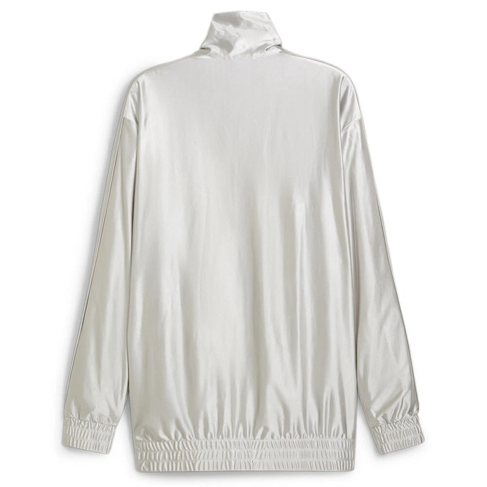 T7 Oversized Metallic Full Zip Track Jacket Product Details Oversized fit Tricot Full-zip closure Long sleeves PUMA branding T7 is a street-style line inspired by PUMA's rich history at the centre of football culture. This metallic track jacket is cut to an oversized fit and treated with PUMA's proprietary moisture-wicking technology. Additional Details Color: Grey Occasion: Casual Gender: Mens Age: Adult Brand: Puma