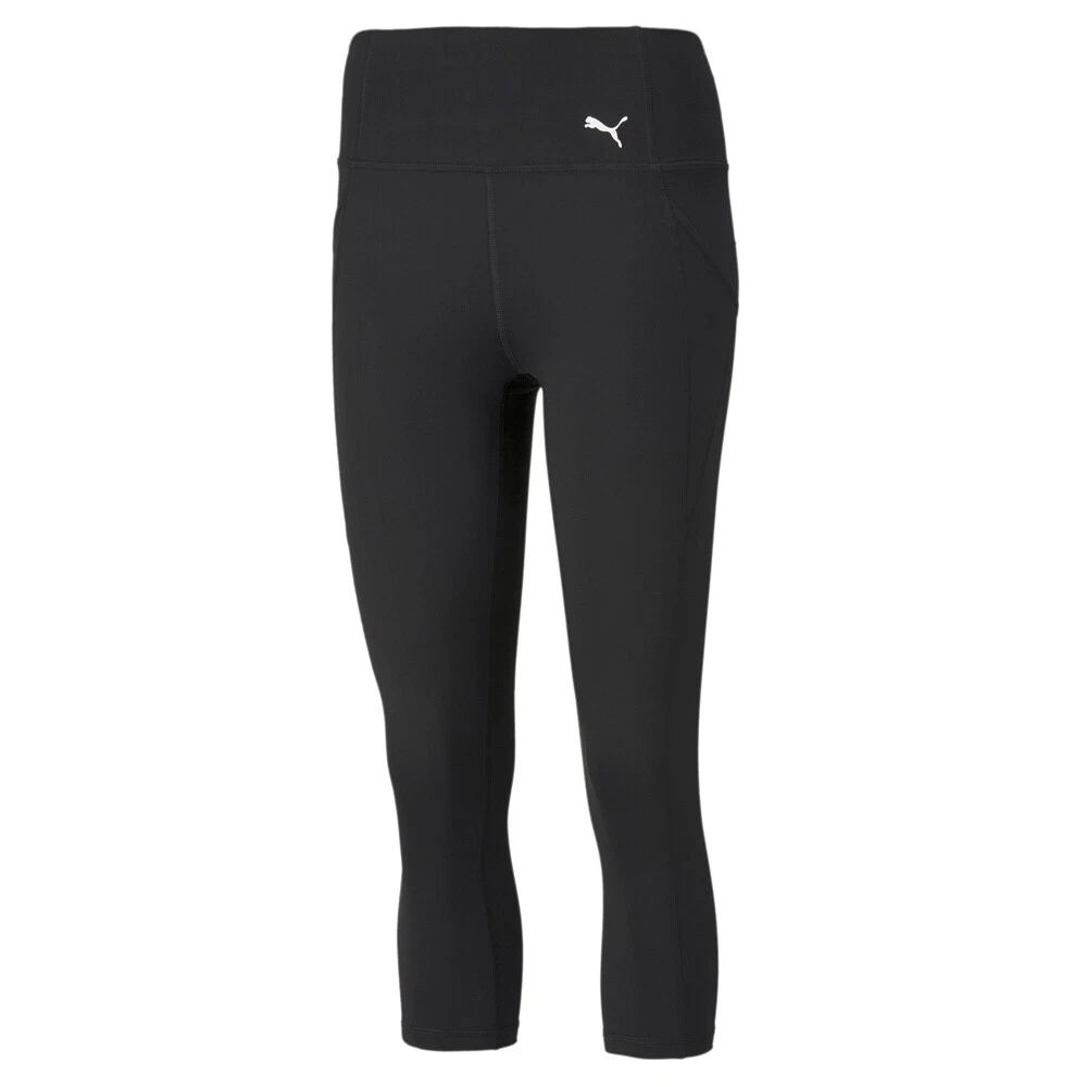 Train Favorite Forever High Waisted 3/4 Inch Capri Leggings (PL) Product Details Tight fit High elastic waistband for better coverage PUMA Cat Logo at left waistband 89% polyester, 11% elastane There's a reason these training leggings are a favorite among serious athletes. The close-body fit matched with the high waist creates comfort and coverage throughout the entire workout. PUMA dryCELL moisture-wicking tech boosts comfort and breathability as you turn up the heat. Additional Details Color: Black Occasion: Casual Gender: Womens Age: Adult Brand: Puma