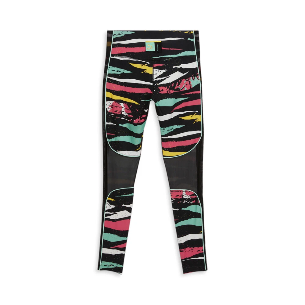 WAL T7 Graphic High Waist Leggings Product Details Regular fit High waist All-over print PUMA and WAL branding details 88% polyester, 12% elastane This season’s We Are Legends collection illustrates the legendary celebration of Carnival, through the lens of the African Diaspora, to amplify messages of cultural pride, diversity, fete heritage, creative expression, and Black joy around the world. Bring a bold look to your wardrobe with these stylish tights, crafted from a mix of recycled materials. Additional Details Color: Black Occasion: Casual Gender: Womens Age: Adult Brand: Puma