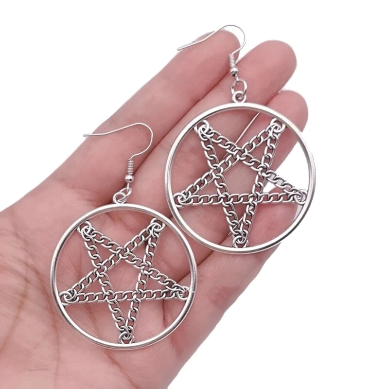 Features: Stand out from the crowd with this vintage and punk inspired Pentagrams Gothic Earrings Crafted with attention to detail, this necklace features a metal pentagrams pendant that exudes mystery and for Halloween enthusiasts, gothic fashion lovers, and trendsetters Whether you're attending a Halloween party, themed gatherings, or simply adding a touch of edgy to your everyday outfits, this is a must have accessory. your individuality and make a statement with this eye catching earrings that combines witchcraft vibes with fashion forward Specifications: Alloy Color:Black,Silver;(Optional) Size:Approx.6.5x4.5cm/2.56x1.77in Package Includes: 1Pair Earrings note: Please allow 1-2cm errors due to manual measurement,please make sure that you do not mind before you order. Due to the difference between different monitors, the picture may not reflect the actual color of the item.