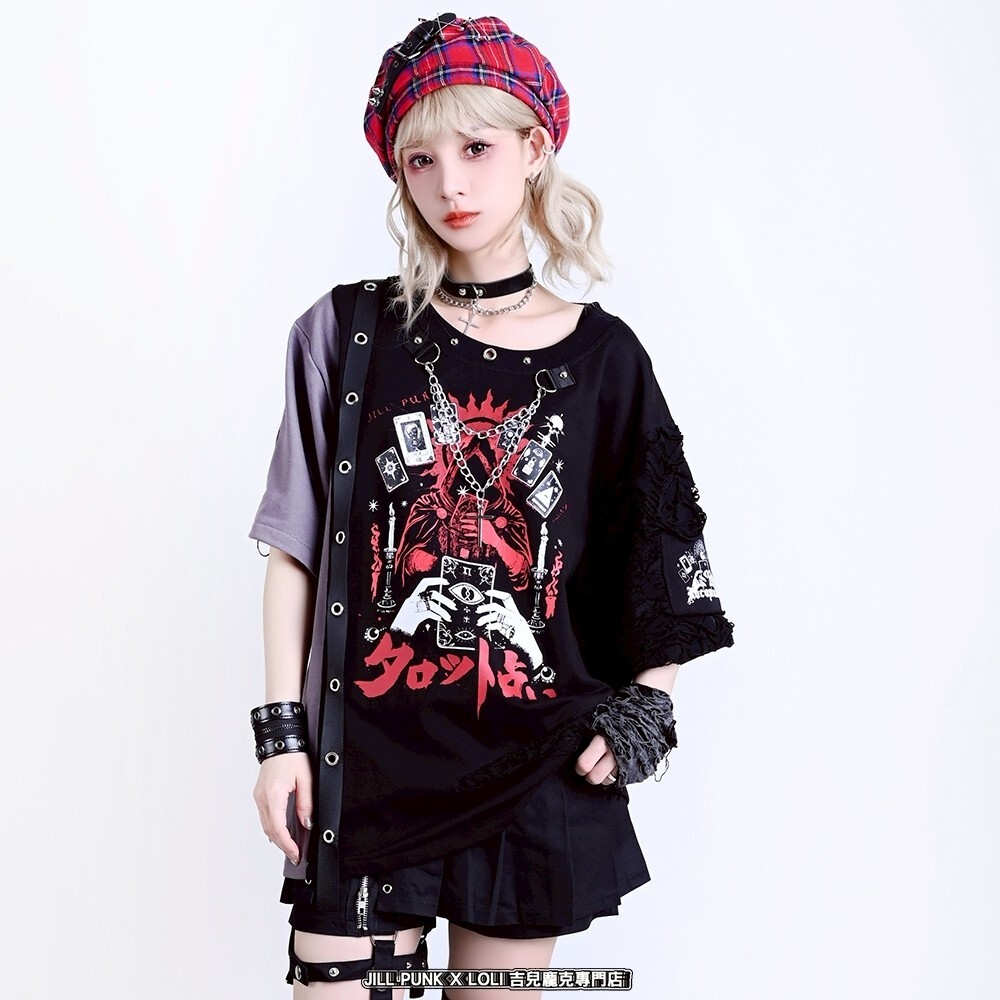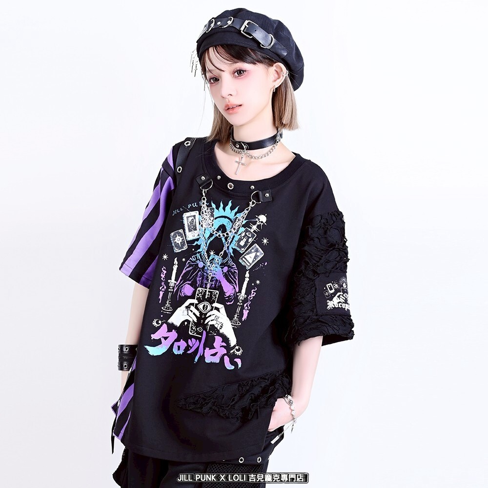 Visual Punk grunge apocalypse TAROT cross necklace short sleeved tee JJ2530 Import duties, taxes, and charges are not included in the item price or shipping cost. These charges are the buyer's responsibility. Please check with your country's customs office to determine what these additional costs will be prior to bid by "when the Fool meets the Hermit on his journey, that's when the apocalypse begins " super cool yet practical collection in punk style full of visual kei characteristics eye-catching color pieced design embellished by a distressed process applied to one sleeve adorned with dashing metal accessories of studs and a silver chains attached with a cross charm. original motif patterns printed in a beautiful tarot theme. optimal for both men and women to wear. available in 2 epic colour versions -NOTE- the featured chokers ARE NOT included Exclusively designed by Jill, guarantee you to hardly find anywhere else@@} size:M/L size(CM) Sleeve length chest shoulder length X X X X M X X 24 111 48 68-72 X L X X 25 120 53 68-72 X X O Please pay for your winning items within 5 days after auction ended PLEASE REFER TO THE SHIPPING MODULE DISPLAYED ON THE PAGE Return/Exchange Policy O All transactions all FINAL. No returns or exchange except for defective items O We will only accept DEFECTIVE items for refund or exchange within 14 days upon received O Please send defective items in Unworn and Unwashed condition and with Original Tag , otherwise we cannot exchange/refund your money back General Rules O Please E-mail us if you have any questions before bidding O Please send us an E-mail before leaving a negative feedback. We might not be able to be a perfect seller to every buyer, but we are 100 % willing to solve any problem you have O We will ship your items within 3 business days after receiving full payment. Powered by SoldEazy