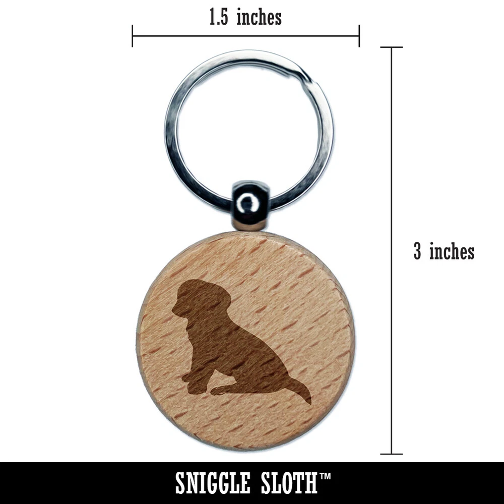 Puppy Dog Sitting Solid Engraved Wood Round Keychain Tag Charm