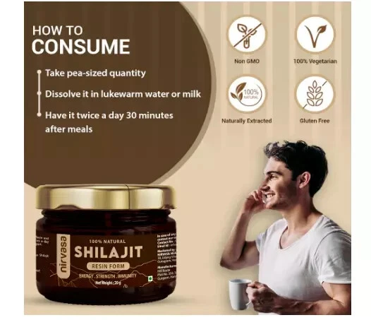 MPN: Does Not Apply Department: Men, Unisex Type of Diet: Ayurvedic, Natural, Organic Scent: Herbal, Mineral Formulation: Resin Type: Resins Body Area: Body Ingredients: Shilajit Expiration Date: Long Expiry Brand: Nirvasa Administration: Oral When to Take: After Meal UPC: Does Not Apply Country/Region of Manufacture: India gtin13: Does Not Apply Active Ingredients: Fulvic Acid, Shilajit Main Purpose: Anti-Aging, Bodybuilding, Dietary Supplement, Energy & Endurance, Immune Support, Men's Health, Mental Health, Metabolism,, Mood Support, Muscle & Nerve Function, Muscle Growth,, Reproductive System Health, Sexual Health, Sport & Fitness Features: Natural, organic, 3rd - party tested Dosage: pea sized