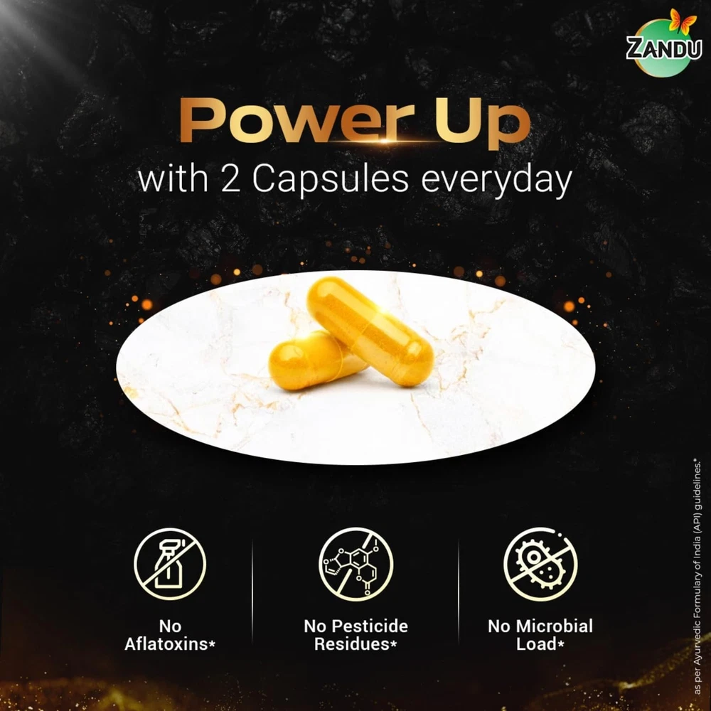 Ingredients: Ashwagandha,Safed Musli,Shilajit,Satavari,Jatiphala,Lavang,Swarna Bhasma,Atmagupta,Safed Musali Directions: Zandu Shilajit Gold Plus is quite convenient and easy to use. Consuming this daily helps make you feel energetic, rejuvenated and healthy while reducing stress. All you need to do is consume a single capsule, twice a day with warm milk. Product description Thriving amidst the challenges of a modern lifestyle necessitates a solid foundation of stamina, strength, and vigor. Zandu has introduced Shilajit Gold Plus, scientifically tested advanced formula with 100% Pure Himalayan Shilajit, Gold Bhasma(made from 24 Karat Gold) + 9 Ayurvedic Ingredients like Ashwagandha, Atmagupta, Satavari, Musli, Jatiphal, Lavanga, Yasad Bhasma, Lavanga etc, which helps enhance strength & stamina. Zandu Shilajit Gold Plus uses an authentic process backed by 5000-year-old Ayurvedic wisdom to ensure quality & authenticity. This advanced formulation has array of health benefits like it helps increase strength & energy, improves vigour, & vitality and enhances power. Consuming these capsules is the most hassle-free solution to maintain good strength & stamina. These capsules are 100% Ayurvedic and vegetarian that comes without any added flavor, preservative or artificial color. From the manufacturer