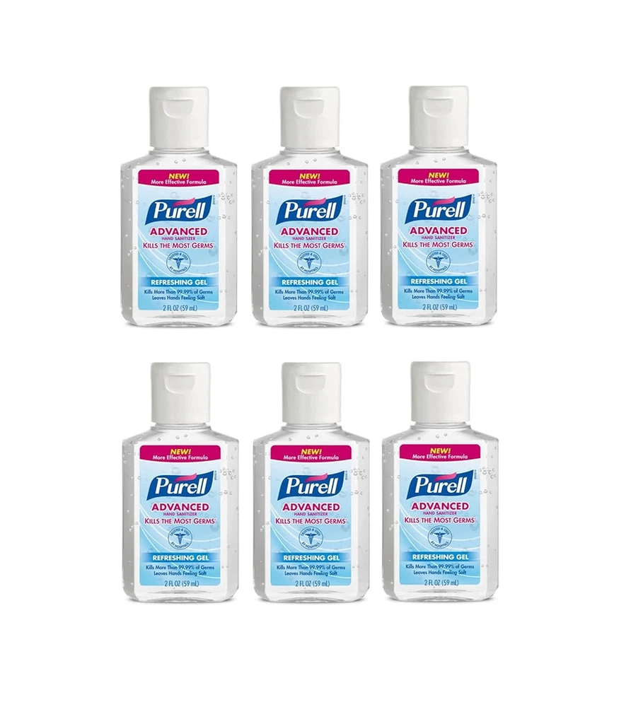 Product Description Purell Advanced Instant Hand Sanitizer, Refreshing Gel, Flip Cap Bottle, 2 Ounce (Pack Of 3) Purell advanced hand sanitizer refreshing gel. Purell hand sanitizer is the no. 1 brand most used by hospitals, and it is preferred by healthcare workers. It is proven to kill 99.99 percent of most common germs that may cause illness, without damaging skin. With a blend of four moisturizers, purell hand sanitizer is perfect for frequent use. The mild formulation is free of parabens, phthalates, preservatives, and harsh ingredients, so it does not dry out or irritate skin. Hands feel soft, even after many uses. Purell hand sanitizer is free of triclosan and will not create super-germs, as the alcohol formulation kills germs fast and evaporates quickly, so germs don’t become resistant. These travel-sized 2 fl oz personal flip-cap bottles are perfect for gym bags, Show you care about well-being with purell advanced hand sanitizer refreshing gel Kills 99.99 percent of most common germs that may cause illness. Outperforms other sanitizers ounce-for-ounce Perfect for frequent use. Mild formulation with 4 moisturizers is free of triclosan, parabens, phthalates, and preservatives so it does not dry out or irritate skin. Hands feel soft, even after many uses Place these 2 oz bottles in gym bags, work bags, purses, and diaper bags Kills 99 99% of most common germs that may cause illness, in as little as 15 seconds Just one quirt of purell advanced hand sanitizer kills as many germs as 2 squirts of any other national brand Clinically proven effective in helping to maintain skin health - skin moisture and skin feel Enhanced with four nourishing skin-conditioning agents, a skin-friendly formulation that's mild on hands Perfect to use when soap and water are not available No. 1 brand of hand sanitizer used in hospitals For adults and children Easy and convenient to use Ingredients active ingredient: ethyl alcohol inactive ingredients: water (aqua); isopropyl alcohol; caprylyl glycol; glycerin; isopropyl myristate; tocopheryl acetate; acrylates/c10-30 alkyl acrylate crosspolymer; aminomethyl propanol; fragrance Active Ingredients Ethyl Alcohol Inactive Ingredients water (aqua); isopropyl alcohol; caprylyl glycol; glycerin; isopropyl myristate; tocopheryl acetate; acrylates/c10-30 alkyl acrylate crosspolymer; aminomethyl propanol; fragrance