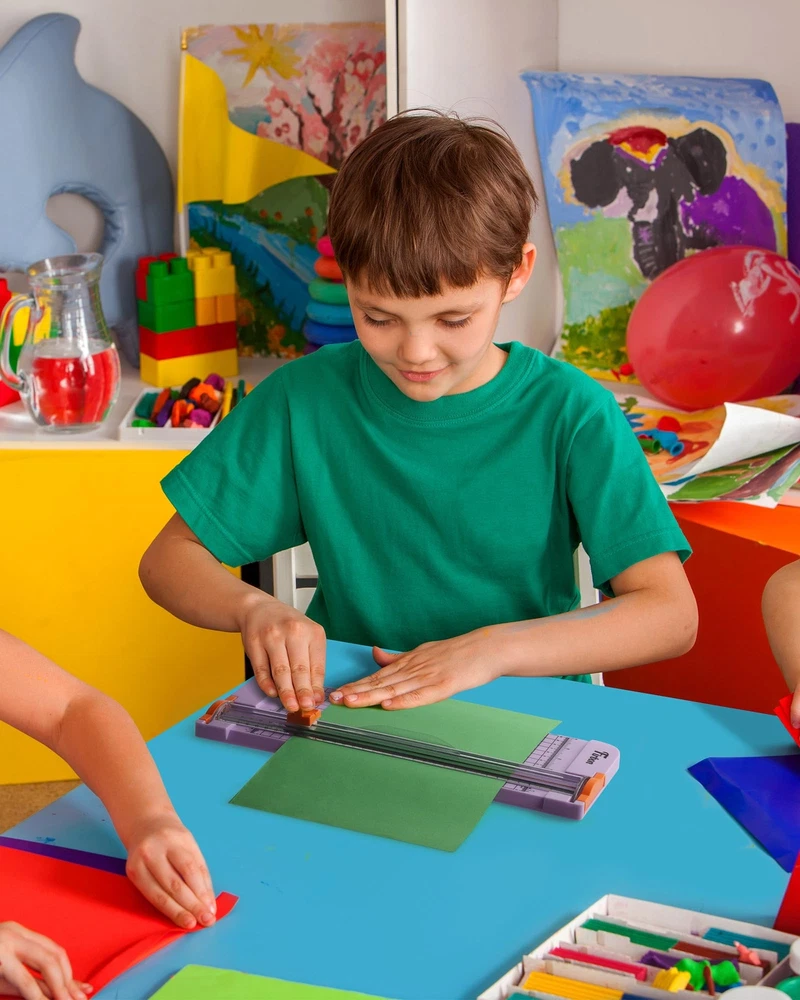 Professional Guillotine: Cut with precision and ease using our sharp spring-loaded blade system and side ruler. Replace the blade easily when it becomes blunt Efficient Cutting: Cut A3, A4, A5 paper, photos, cards, laminated materials (within 1.5 mm), and more. Cut up to 12 sheets of paper (80 g/m2) at once for maximum efficiency Accurate Measurements: Trim angles and lengths with ease using our 45-degree to 90-degree angle measuring plate and cm/inch scale Portable and Safe: Our lightweight and convenient cutter is designed with safety in mind. The spring-loaded blade only works when you press it, making it safe for users of all ages Versatile Crafting: Perfect for all your crafting needs, including scrapbooking, wedding invitations, and greeting cards. Ideal for use at home, in the office, or at school