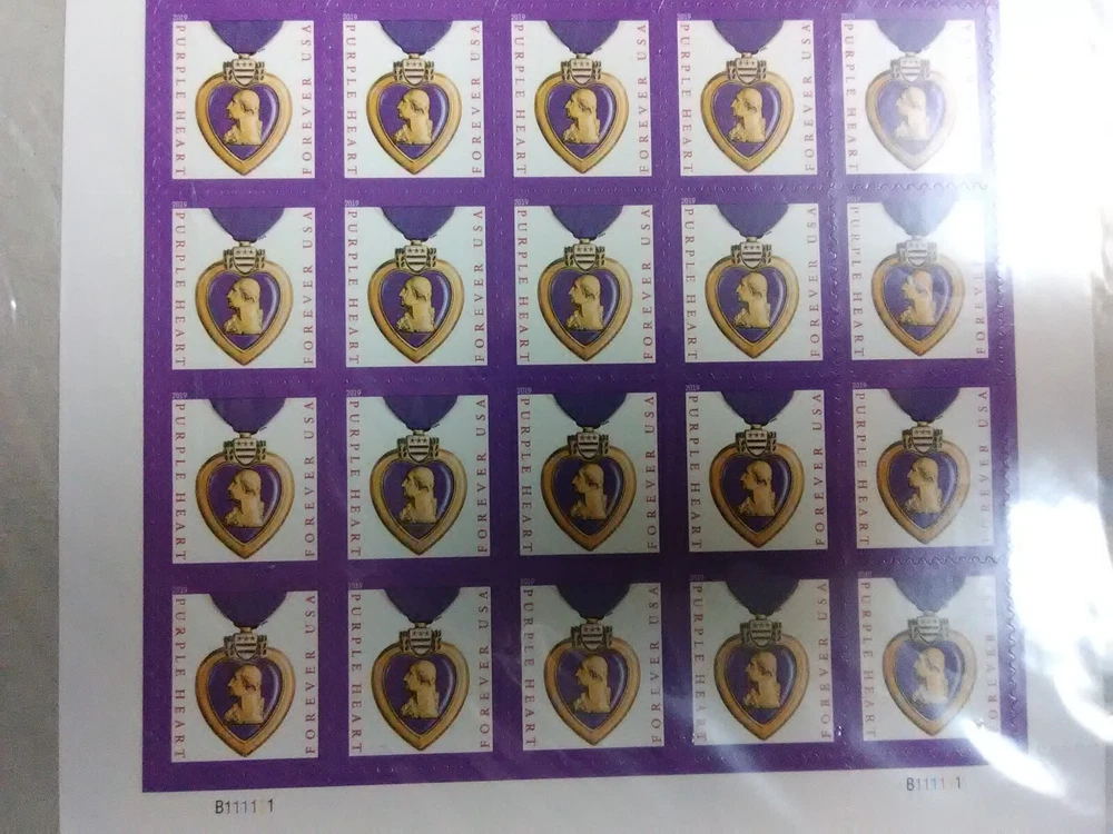 Purple Heart Medal Forever Stamp sheet unopened sealed in an original cellophane 2019 20 stamps total Colors in photos may appear slightly different because of photography lighting and phone/computer screens, etc.