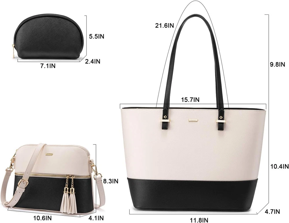 Store New Arrivals Add to Favorite View Feedback Contact Purses for Women Shoulder Bags Tote Satchel Hobo Bag 3Pcs Handbag Set Description Item model number WB149301LK Department womens Product Dimensions 10.4 x 4.7 x 11.8 inches; 3.37 Pounds Country of Origin China Color Beige-black Product Description LOVEVOOK 3pcs Purse Set for Women 3 in 1 Purse Set High Quality Slightly Harder PU Leather LOVEVOOK Black&Beige Tote Bag for Work Fashionable and Convenient Standable Nail Feet on Bottom LOVEVOOK Crossbody Bag for Shopping Adjustable Shoulder Strap Smooth Metal Zipper Load Testing Brand and Craftsmanship Tote Bag Details Crossbody Bag Details 1 Pink Set 2 Brown Set 3 Beige Set 4 Purple Set 5 Grey Set ABOUT US We offer the best prices around on high quality products. Our E-store includes media such as books, movies, music and games while offering electronics, toys, sporting apparel, clothing, tools, general home, garden items and more. SHIPPING We are always working hard to ensure your package arrives as soon as possible. Please understand that some factors like weather, high postal traffic, and the performance of shipping companies are outside of our control. We offer free shipping to the lower 48 states and ship within 2 business days of payment, usually sooner. We do not accept P.O. Boxes. Please provide a physical address. For shipping outside of the continental USA, we only use eBay's Global Shipping Program.The item is shipped to KY and then sent to the rest of the world. International customers are responsible for all duties and taxes. Continue to check out in order to calculate costs for shipping the item to your country. Messages regarding eBay's Global Shipping Program MUST be directed at eBay EXCLUSIVELY. RETURNS We offer a 30-Day Return Policy on items which you are not completely satisfied with. You have the option for a full-refund or an exchange of the item. No returns are available on items shipped outside of the USA. PAYMENT We accept PayPal. CONTACT US This page content is yet to come Please ad us to your favorite seller and visit again later Thank You CUSTOMER SATISFACTION We try our very best to make sure every customer is completely satisfied. If there's a problem, message us! We're happy to help. WE ACCEPT Copyright © 2021 AutoDS. | All Rights Reserved