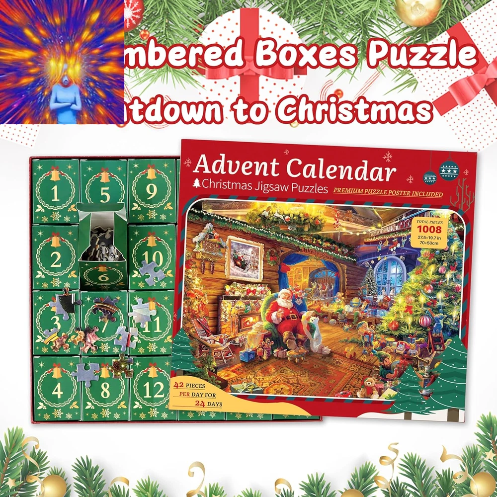 Store New Arrivals Add to Favorite View Feedback Contact Puzzle Advent Calendar 2024 Christmas Puzzle for Kids Adults - Santa'S Workshop 24 Boxes 1008 Pieces Advent Puzzle Countdown to Christmas Gifts for Boys Girls Christmas Decorations(27.56" X 19.69") Description Color Santa's Workshop Material Paper Material Type Paper Manufacturer Part Number KP-02 Item Weight 0.317 ounces Age Range (Description) Adult, Teen, Kid Product Dimensions 27.56"L x 19.69"W đ ăAdvent Calendar Puzzle Countdown to Christmasă-- This advent calendar 2024 adult and kids puzzle contains 24 numbered boxes to open on the day that corresponds to the number. The inside of each box have 42 pieces puzzles, which belong to the part of the whole 1008-piece jigsaw puzzle. The goal is to finish one section of the christmas puzzles every day between December 1 - 24 and countdown to Christmas day. Perfect advent calendar 2024 kids adults teens. đ ăSanta's Workshop is Comingă-- This christmas advent calendar puzzle is included 24 captivating Christmas-themed posters features Santa Claus is sitting on the couch enjoyable. There are many worker are working there. Fireplace, Christmas Tree, Sleigh, Christmas Presents & Stockings, Animals all is here. It shows a warm, happy and auspicious Christmas atmosphere. Christmas puzzle advent calendar for adults and kids arousing anticipation and excitement for the upcoming Christmas festivities. Finished size are: 70*50cm/27.56" x 19.69". (Come with 1:1 puzzle poster for reference) đ ăAdvent Puzzle Calendar 2024 for All Agesă-- Unique design advent puzzle, knowing which pieces belong to which section makes this kids and adult advent calendar puzzle a bit easier than other christmas puzzles 1000 pieces. So this best advent calendars puzzle set is suitable for more ages people. This advent calendar puzzle promises to give puzzle fans a lot of enjoyment and satisfaction, whether you're an expert puzzler searching for a difficult task or a beginner wishing to start on a fun puzzle-solving adventure. Great christmas gifts for kids and adults. đ§©ăPremium Quality Advent Calendar Jigsaw Puzzle ă-- Made of 1008 pieces high quality recycled cardboard, sturdy and bend-resistant. Special surface film treatment, color remains freshness after long time storage. Each puzzle piece is precision cutting to ensure a tight fit between pieces, burr-free edge and almost no dust,bring you a satisfying and visually appealing experience. Good puzzles for adults advent calendar 2024 boys girls women men. đăSurpise Christmas Gift Or Home Decoră--With an exquisite box, this jigsaw puzzle advent calendar 2024 can be a perfect gift for kids teens adult on Christmas. After you finished the puzzles, you can frame it and hang it on the wall to decorate your home, make your home more beautiful and warm! Play this kids advent calendar 2024 christmas puzzles for adults kids with your familys and welcome to christmas! đăPackage Lists & MISSING PIECE SUPPORTă-- 1008 Piece Christmas Puzzle Advent Calendar (24 Little Boxes Pack In Beautiful Gift Package ), 1* 1: 1 Poster for Refer Puzzle, Puzzle Finished Size: L x W=27.6 in x 19.7 in Package Size: 11.1 in x 10.2 in x 2 in . MISSING PIECE NO WORRY: Please don't worry about the missing piece, if the christmas puzzle advent calendar you received has any problem, please MAIL us at once, we will help you to solve the problem ASAP. Product Description KWYZ Advent Calendar 2024 Jigsaw Puzzle for Adult Kids -- Let's Countdown to Christmas Together This is a 1008 Piece christmas puzzles for adults and kids has 24 boxes puzzle and you finish 1 part everyday to countdown to christmas. We called it Christmas Advent Calendar Puzzle. On Dec. 24, you will get a complete picture which featuring Santa Claus is sitting on the couch enjoyable. There are many worker are working there. Fireplace, Christmas Tree, Sleigh, Christmas Presents & Stockings, Animals all is here. It shows a warm, happy and auspicious Christmas atmosphere. Just look at here, our advent calendar puzzle 2024 with packed in a beautiful gift box and 24 little boxes are waiting for you! Our advent calendar 2024 christmas puzzle are made of thick cardboard with very little puzzle dust, carefully designed with meticulous attention to detail and constructed from durable materials. Special surface film treatment, color remains freshness after long time storage. With perfect adhesion, the puzzle advent calendar pieces seamlessly lock into place, creating a sturdy and satisfying completion. The smooth fit and exceptional quality elevate the overall puzzle experience, providing hours of puzzling enjoy for both kids and adults. Advent calendar for girls, kids advent calendar 2024 girls boys. Our advent puzzle are in rich color and all the puzzle pieces are in different shapes. It will be much more interesting for playing with. Also come with 1:1 clear puzzle poster for you to finish the puzzle. Perfect adult advent calendar advent calendar for teens kids. Christmas Advent Calendar 2024, Use this Christmas Puzzle 1008 Piece 24 Parts Countdown to Christmas with Your Kids Countdown to Christmas day is a very exciting thing. You can play and put the puzzle together with your child via this advent calendar christmas puzzle. It can give you more opportunities to communicate with and enchance the relationship to your kids, and also keeps you do something fun and relaxing to do each day leading up to Christmas. After you finish it on the christmas eve, don't forget to hang it on your home for christmas decoration. Unique Christmas Gifts for Teens Kids Adults - Fun Christmas Advent Calendar 2024 - An Educational Activities for Countdown To Christmas! KWYZ Christmas puzzle advent calendar not only provide entertainment for the whole family, also offers educational benefits. It's not just puzzles for adults, but meaningful advent calendar for kids, teen advent calendar 2024. Each puzzle contains varying levels of difficulty, 