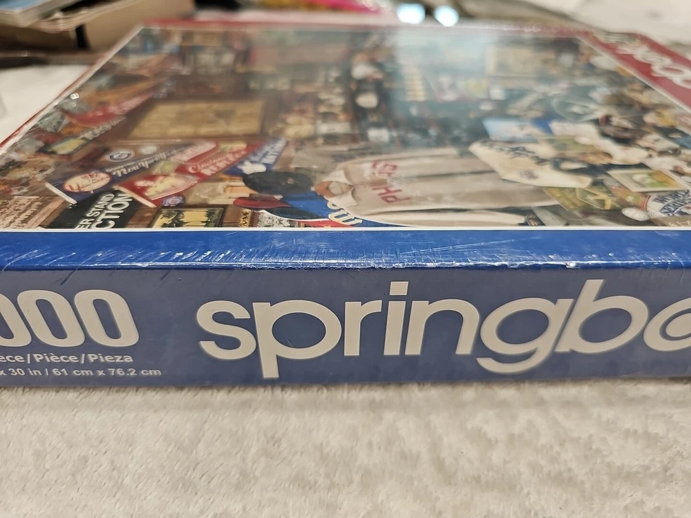 This is a great puzzle for any baseball fan! It features memorabilia from the Dodgers, Yankees, and Phillies, making it a fun addition to any collection. With 1000 pieces, this puzzle is sure to provide hours of entertainment and a sense of accomplishment when completed. The puzzle is made of sturdy cardboard and features interlocking pieces for easy assembly. It is also complete with all necessary pieces included. The puzzle is perfect for individuals aged 8 and up, as well as adults aged 17 and up. The multi-color puzzle is designed with a baseball theme, and MLB character family. It was manufactured in the United States in 2021 and is a great gift for any puzzle or baseball enthusiast. BRAND NEW & SEALED