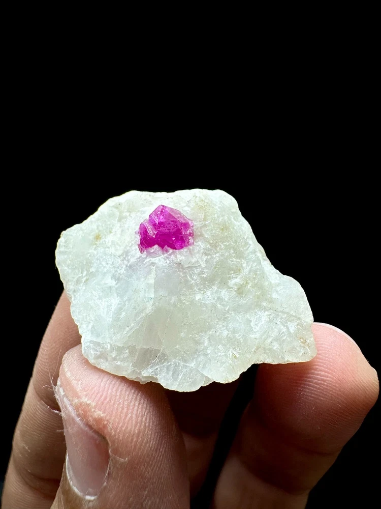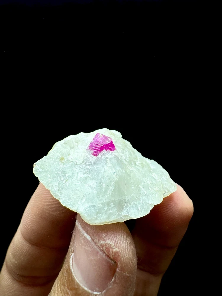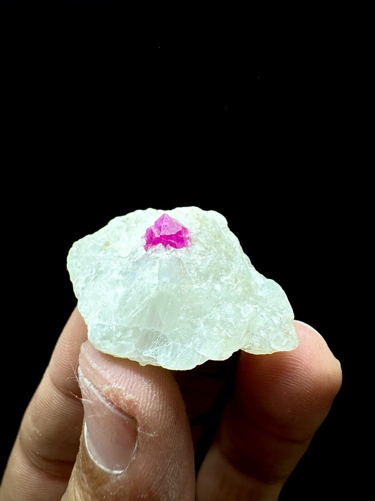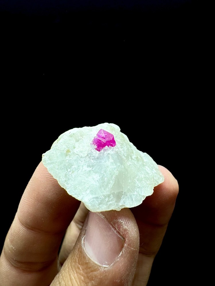 Pyramid Shape Well Terminated Ruby Specimen from Jagdalek Afghanistan - 51.55 Ct Specimen contains terminated and undamaged ruby crystal. Ruby crystal has perfect Pigeon Blood Red color. It has excellent luster. Weight : 51.55ct Size : 35*25*24 mm Origin : Jagdalek Afghanistan Treatment : Natural Express Shipping