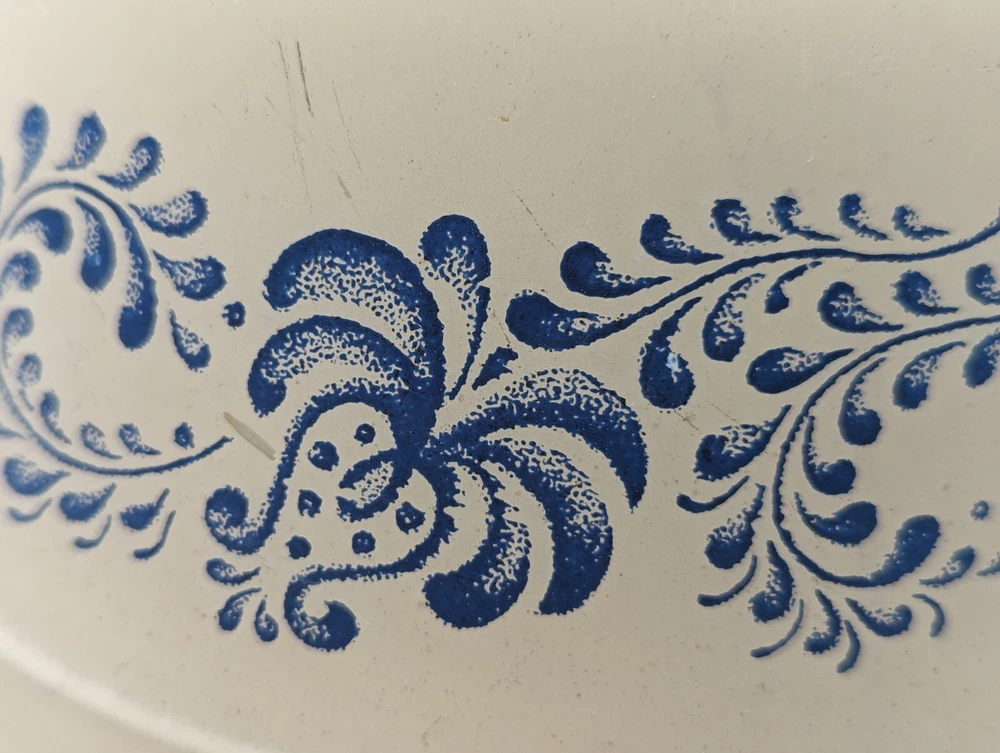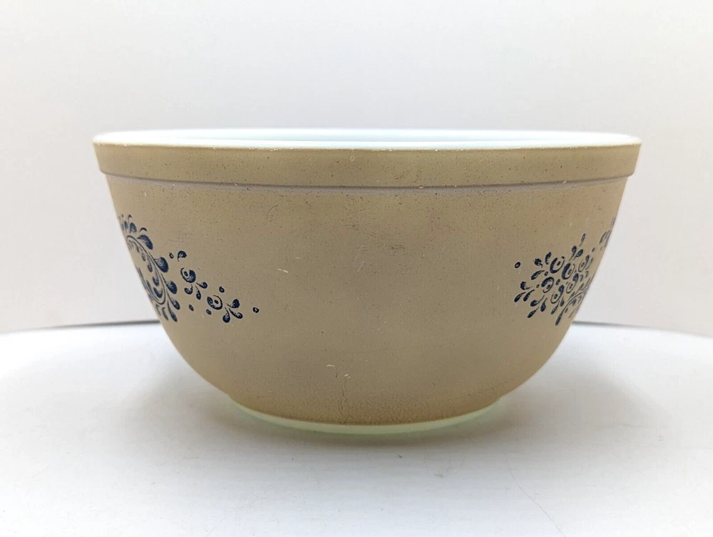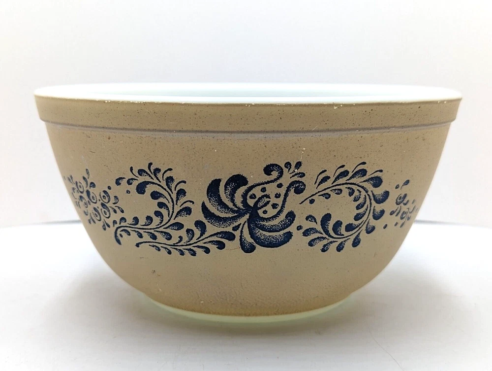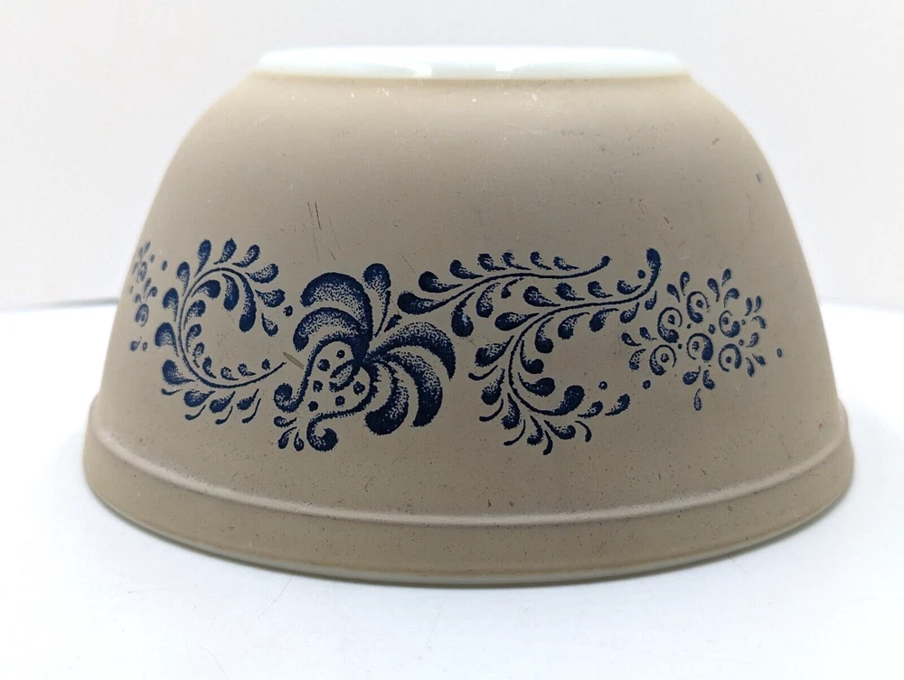 Pyrex Corning 1.5 Qt Mixing Bowl Homestead Blue Onion Pattern VTG 1976-1980. There are some scratches on the outside of the bowl - please see the last 4 photos for reference. There are no chips or cracks. All of my items are carefully packed for shipping, no matter their value - $5 items are wrapped with the same care as a $200 item. My goal is to have your purchase arrive safely. I use recycled packaging when possible but mostly use new, high quality products so your item will arrive intact without damage. Large, heavy and fragile items are harder to use combined shipping with but just ask if you would like to purchase more than one item and I am more than happy to do so if feasible. If not, maybe we can work out a shipping discount. Thank you and hopefully you will visit my store again!