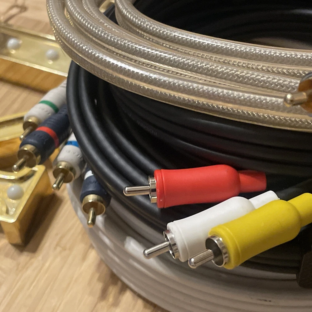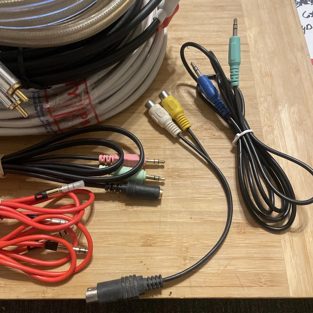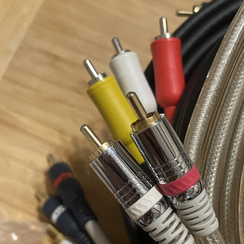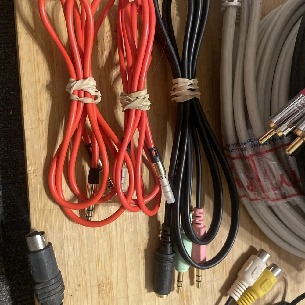 Lots and lots of goods! Please inspect pictures! The product consists of Python Cable RCA Video + Audio available in 8' and 12' lengths. It includes RCA video and audio connectors, as well as a car speaker splitter and 3.5mm audio combo connectors + more! The cable is designed for connecting various audio and video devices.