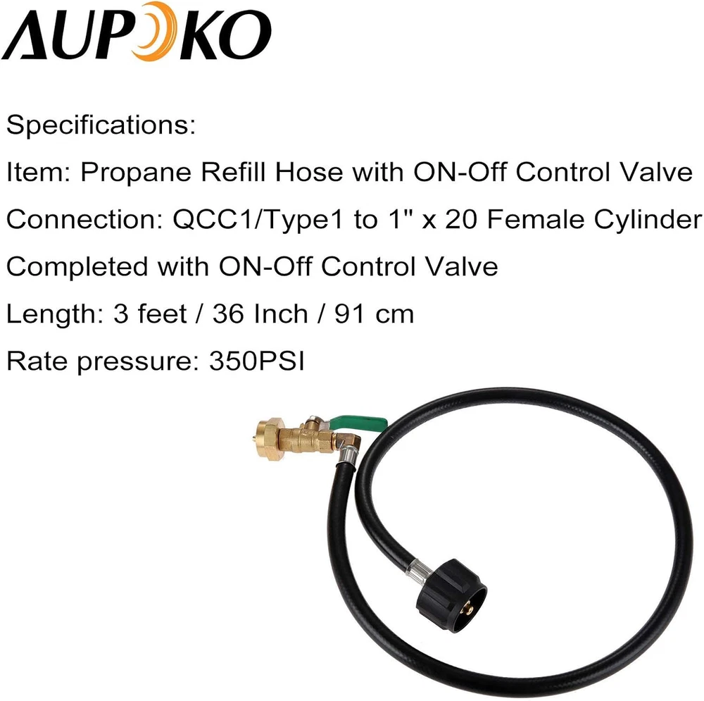Store New Arrivals Add to Favorite View Feedback Contact QCC1 Propane Refill Hose, 350PSI High Pressure Camping Grill 1LB Propane Refill Adapter Hose, 36’’ Propane Extension Hose with 1LB Tank Bottle Adapter Connection with On-Off Control Valve Description Maximum Pressure 350 Pound per Square Inch Color Black Material Rubber Item Weight 16 ounces Item Length 3 Feet Size QCC1 Wide Compatibility ---- This propane refill adapter hose can refill the 1lb camping bottle and connect 20-50Lb propane tank directly, with this adapter hose you can use it on 20Lb or larger tanks that will last you long period of time, convenient for those with larger tanks. Fits for heater, camp stove, portable grill, tabletop grill, and more. Great for camping, tailgating, heating needs or having an outdoor cookout. Premium Quality ---- This 1lb propane refill adapter hose comes with quality rubber to ensure you safe leakage free operation while providing excellent weather resistance, the one pound bottle tank adapter connection of this propane refill hose is made of solid brass to ensure secure and durable for long-lasting to use. Easy To Install ---- Propane adapter refill hose is easy and quick attachment for easier installation, can easily connect your big Cylinder to the small 1LB propane tank without move or carry. Note ---- If you want to connect it with your 1 pound regulator, make sure you remove the regulator on RV, if your grill connects a standard QCC or POL regulator with hose 3/8" female flare nuts, so just take off the regulator hose and the 1LB adapter on our hose then connect your RV. 1 Year Warranty ---- Order this 350PSI high pressure camping grill QCC1 type propane refill hose from Aupoko, we can provide 12 months free-worry warranty, should be there any question, please feel free to . Product Description How to install ? Connect the Qcc1 adapter to your tank first and open gas for few seconds then connect the 1lb adapter to your small tanks and over flow protection device is designed in the QCC adapter. The propane adapter refill hose is easy and quick attachment for easier installation, can easily connect your big Cylinder to the small 1LB propane tank without move and carry. Make your life more convenient ! The refill adapter can reusable-- You do not need spend extra money to buy 1LB gas tank. That's saving you a fortune Save more place-- Make your garden more succinct and beautiful. DETAILS Item Propane Refill Hose with ON-Off Control Valve Length 3 feet / 36 Inch / 91 cm Rate pressure 350PSI Connection QCC1/Type1 Connector to 1" x 20 Female Throwaway Cylinder Thread Package Included Propane Refill Hose with ON-Off Control Valve ABOUT US We offer the best prices around on high quality products. Our E-store includes media such as books, movies, music and games while offering electronics, toys, sporting apparel, clothing, tools, general home, garden items and more. SHIPPING We are always working hard to ensure your package arrives as soon as possible. Please understand that some factors like weather, high postal traffic, and the performance of shipping companies are outside of our control. We offer free shipping to the lower 48 states and ship within 2 business days of payment, usually sooner. We do not accept P.O. Boxes. Please provide a physical address. For shipping outside of the continental USA, we only use eBay's Global Shipping Program.The item is shipped to KY and then sent to the rest of the world. International customers are responsible for all duties and taxes. Continue to check out in order to calculate costs for shipping the item to your country. Messages regarding eBay's Global Shipping Program MUST be directed at eBay EXCLUSIVELY. RETURNS We offer a 30-Day Return Policy on items which you are not completely satisfied with. You have the option for a full-refund or an exchange of the item. No returns are available on items shipped outside of the USA. PAYMENT We accept PayPal. CONTACT US This page content is yet to come Please ad us to your favorite seller and visit again later Thank You CUSTOMER SATISFACTION We try our very best to make sure every customer is completely satisfied. If there's a problem, message us! We're happy to help. WE ACCEPT Copyright © 2021 AutoDS. | All Rights Reserved