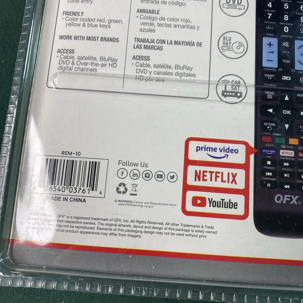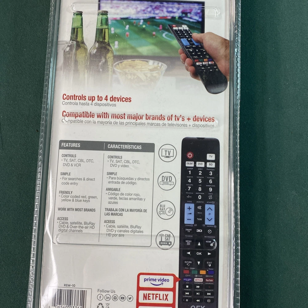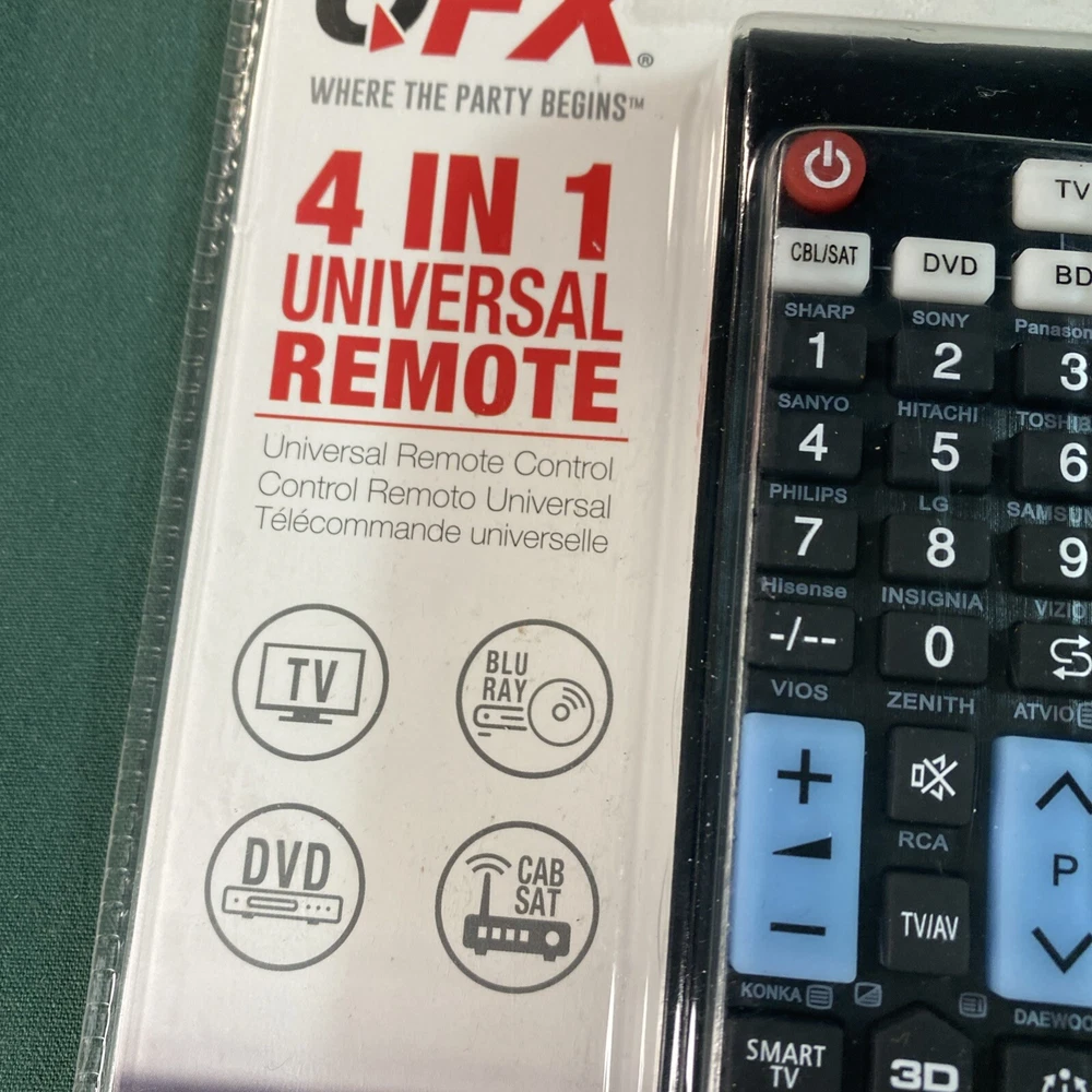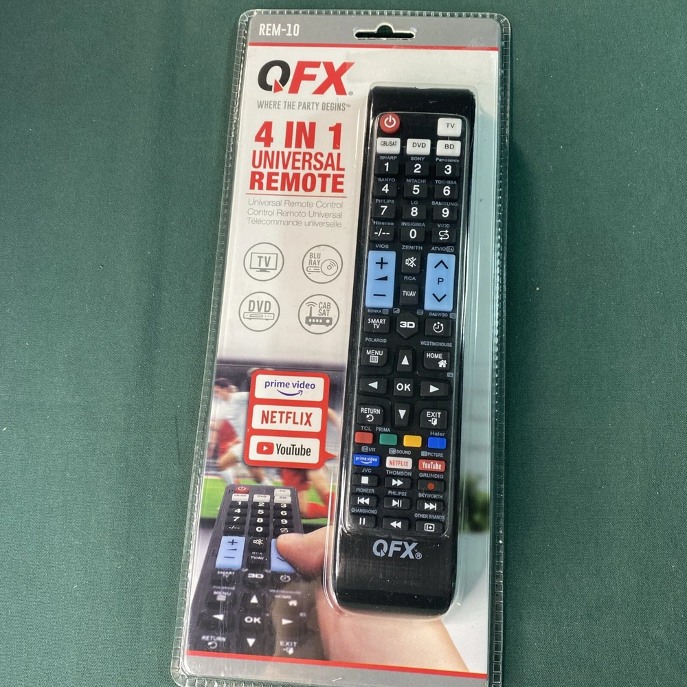 Control all your devices with ease using the QFX REM-10 4-In-1 Universal Remote Control. This remote is compatible with multiple brands and models, making it a versatile choice for any household. Whether you're watching your favorite Netflix show or streaming live TV, this remote has got you covered. Its intuitive button layout and easy-to-use interface make it a great choice for anyone who wants to control their devices with ease. Get yours today and experience the convenience of the QFX REM-10 universal remote control.