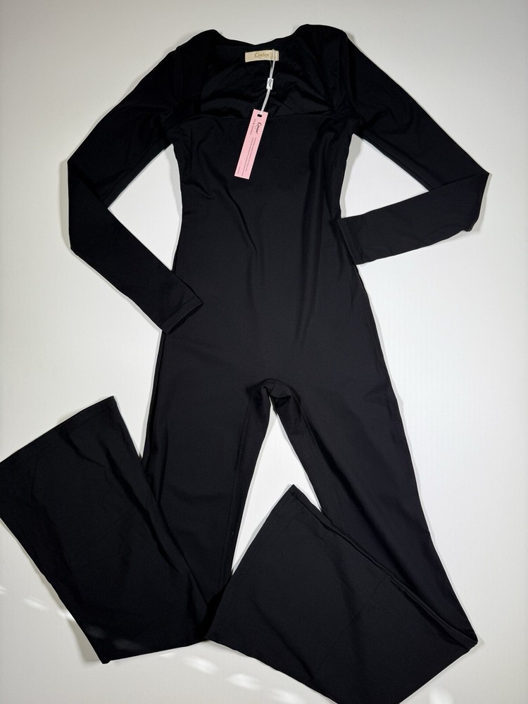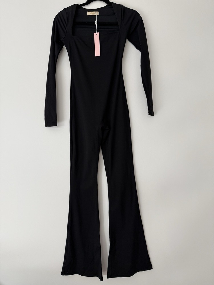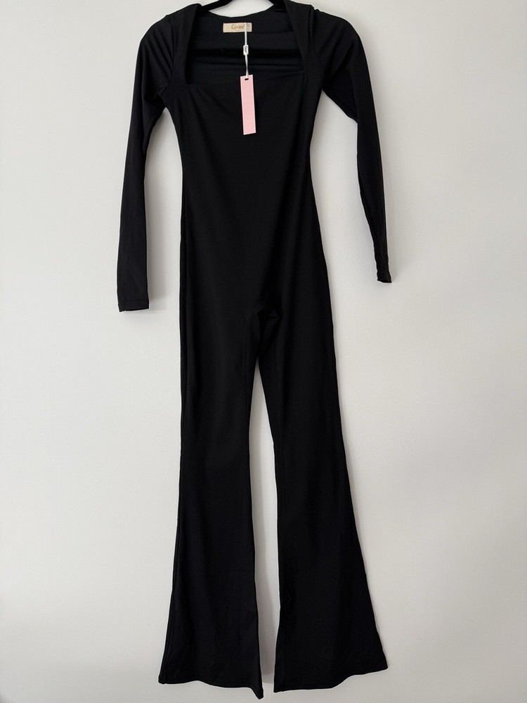 Make a statement with this chic QINSEN jumpsuit in black. Perfect for women who want to show off their style, this one-piece outfit features a square neck and wide-leg design. It's made of 78% nylon and 22% spandex, making it comfortable and stretchy. This jumpsuit comes in size M and is perfect for any season. Whether you're going out for a night on the town or running errands, this romper playsuit will keep you looking stylish. The pull-on closure and athletic fit make it easy to wear and move in. Don't miss out on this fashionable and versatile piece!
