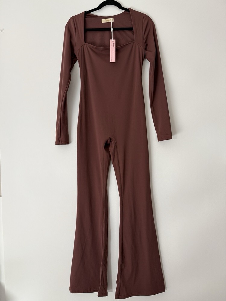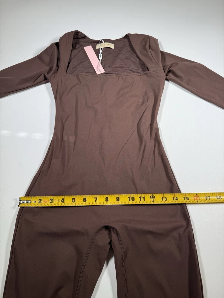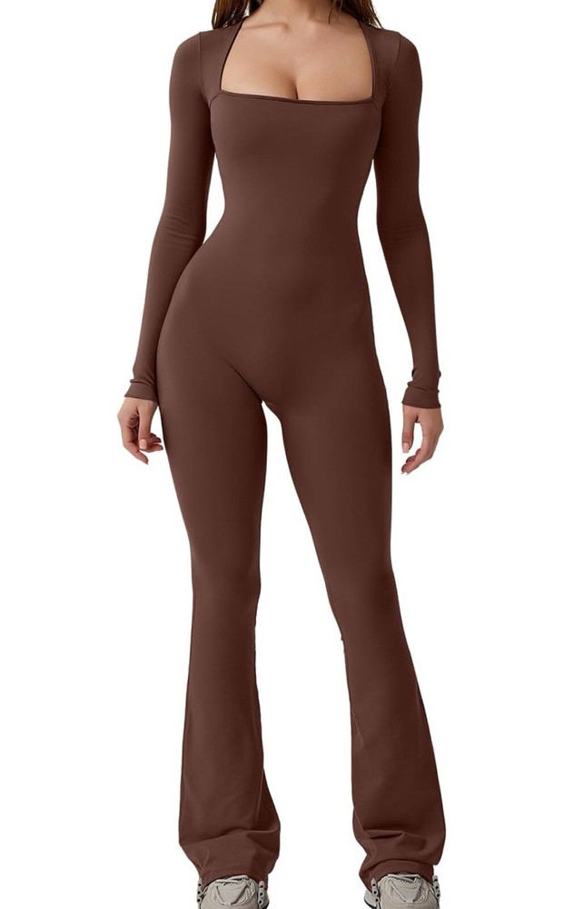 This QINSEN jumpsuit for women is a stylish and versatile piece that can be worn during any season. The square neck and wide-leg design create a flattering silhouette, while the long sleeves add a touch of sophistication. The jumpsuit is made from a comfortable and stretchy material consisting of 78% nylon and 22% spandex, and features a pull-on closure for easy wear. In addition, this one-piece garment comes in a beautiful brown color and is available in size S. It is perfect for athletic activities or casual wear, and can be paired with leggings for added comfort. The inseam measures 30 inches, making it a full-length romper playsuit that is sure to make a fashion statement.
