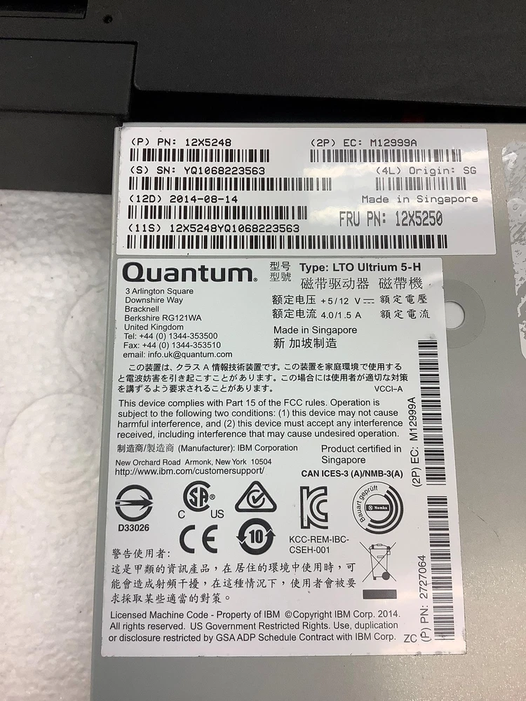 QUANTUM 7226-1U3 LTO 5-H FRU Storage Enclosure w/2 Lto Ultrium 5-H Tape Drives QUANTUM 7226-1U3 LTO 5-H FRU Storage Enclosure w/2 Lto Ultrium 5-H Tape Drives (If there are any issues with the item please call or email before opening a case or leaving a negative feedback, we will resolve the issue within 24 hours) Item Details : Make: Quantum Model: 7226-1U3 Tape Drives: 2 Quantum Lto Ultrium 5-H Fru P/N 12x5250 Included Power Cord Included Condition: Used - Working Comes as pictured Warranty:30 Day Warranty Lister 84056 GDCD0904 Payment Details: We accept payment through Paypal. PayPal provides fast and secure transactions. We ship to confirmed PayPal address. No Checks or escrow. Canadian buyers are responsible for all custom - brokerage - GST and PST charges Shipping Information: We usually ship within 1-2 days after payment has been received. We allow FREE local pickup please call/text on the numbers in the order confirmation email from ebay or email us via ebay to arrange pickup or you an stop at our store between 9-5 Monday through Friday. Our address for pickup is SUM Computers Inc. 4945 Monaco St Commerce City CO 80022 Warranty Information: All items come with 30 Days warranty unless stated otherwise in the description. (Please read description). If the item arrives damaged please let us know and we will file a claim with the shipping company. Sorry we do not offer any warranties on the batteries software and operating system issues. Feedback and Contact Information: Our system is automated and will leave positive feedback upon receiving positive feedback. Please contact us if there are any issues with the item. Please give us an opportunity to resolve the issue before leaving any bad feedback. We try our best to explain the item with utmost accuracy but sometimes there are human errors. Please do not hesitate to email or call us with any questions or concerns.