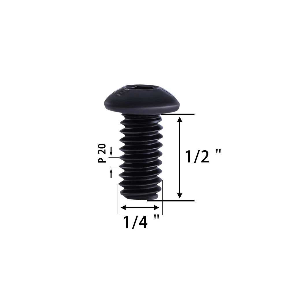 (Qty 50) 1/4-20 X 1/2" Button Head Cap Screw Black Oxide Coarse Thread Socket Description Feature : 1. The button head socket screws are 100% alloy steel grade 10.9 2. The low profile of the socket button head makes a very clean looking, and offers a much larger contact surface. 3.Button Head Socket Screws are great to have around for use in wood and wet environments. SPecifition Material :Alloy Steel Thread Diameter : 1/4" Head Diameter : 0.437" Head Height : 0.132" Screw Length : 1/2 Pitch Size : 20 Threads per Inch Allen Hex Drive : 0.156" (5/32") Material : Alloy Steel Grade 10.9 Package Included : 50 x Button Head Socket Bolts/Screws. 1xL-shaped wrench Payment Shipping Returns Contact Us ★We accept Paypal payment only. ★We will leave a positive feedback immediately after payment is received. We appreciate a positive feedback as much as you do. If for some reason there is any issue with the purchase, please contact us prior to leaving feedback, we will be glad to work together and provide a satisfying solution. Package handling only takes 1 business day at our US STOCK, so please make sure entering correct payment and shipping information before checking out.different Font Size, Font Color, Style and even graphics and icons are also accepted. ] 1.A full refund will be given if items are returned in thier original condition. 2 Merchandise which is damaged or missing component is not refundable 3.Buyer are responsible for return shipping with proper packaging 4.Before returning items, please make sure you get to our return address, Please inform us the tracking number after you return the items 5. Once receiving items, we will refund you inmmediately [ Contact Us: This is the contents of your Contact Us. You can add a banner for this Contact Us as header and add text descriptions here. The text descriptions can be different Font Size, Font Color, Style and even graphics and icons are also accepted. ]
