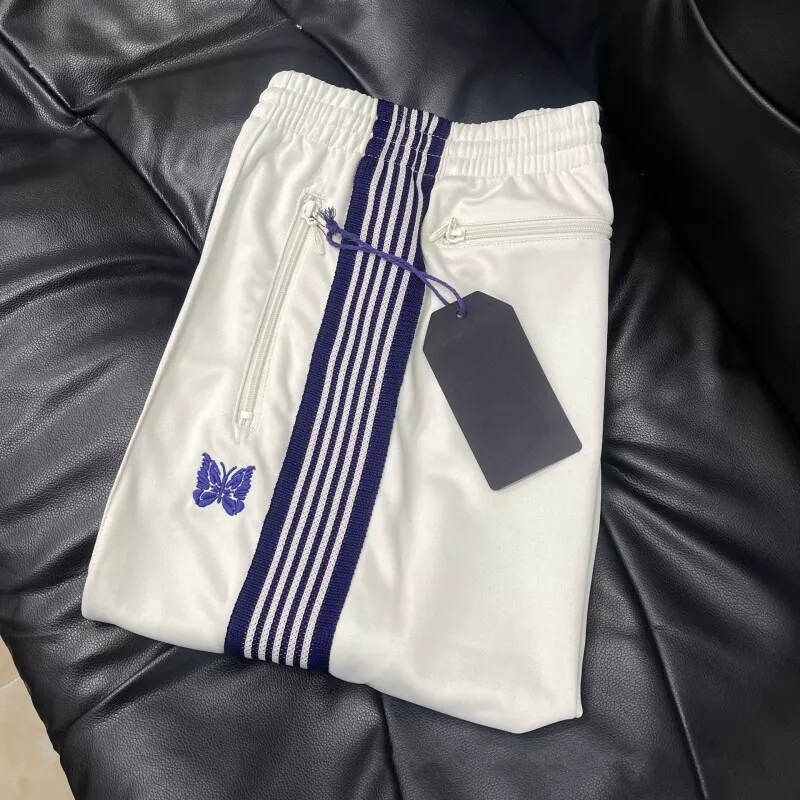 Quality Embroidered Needles Track Pants Classic Stripe Trousers