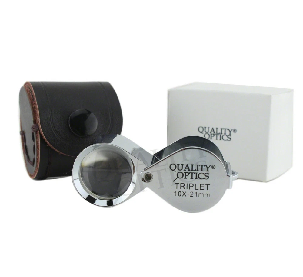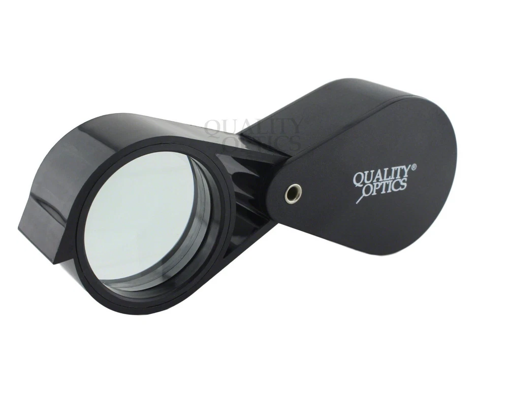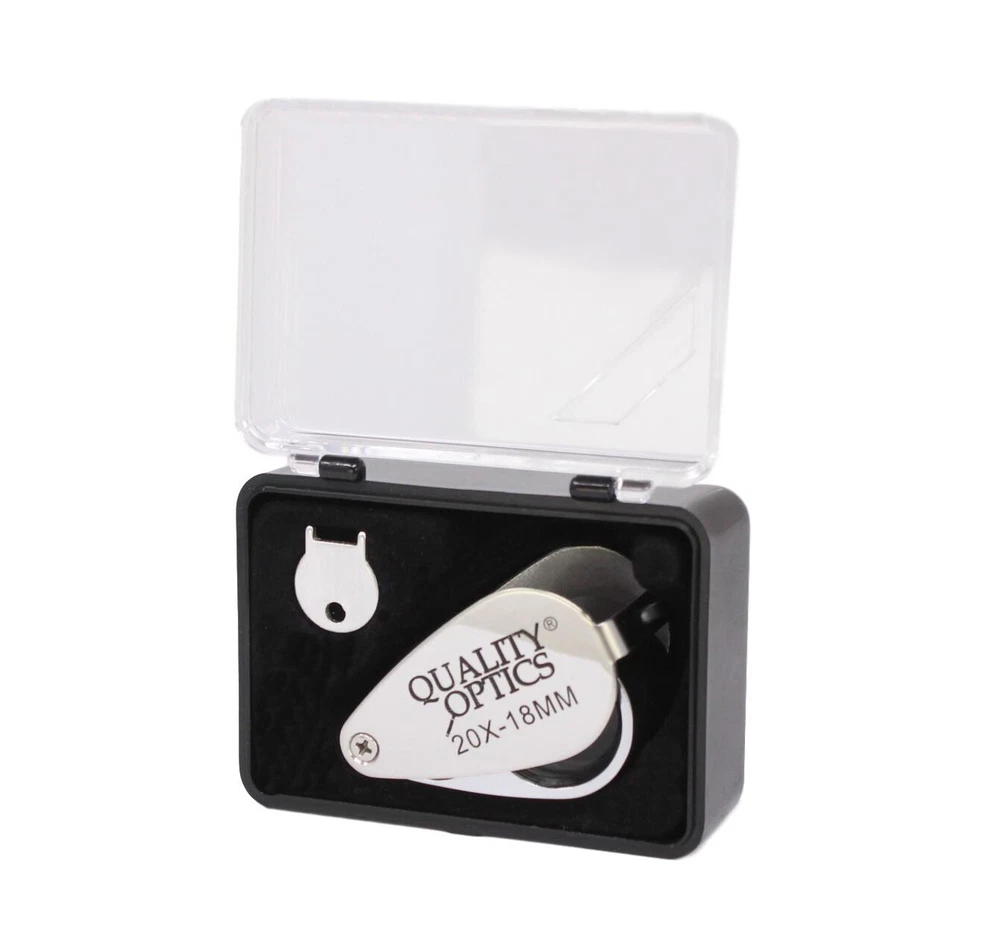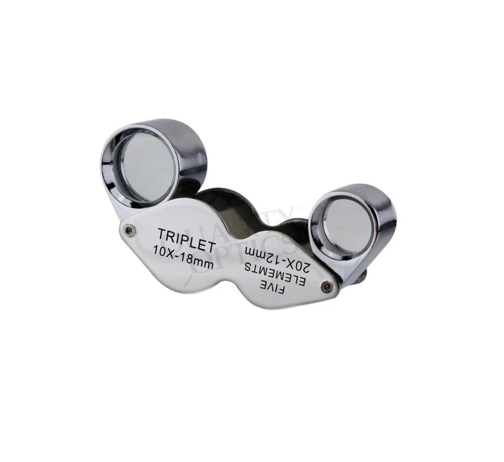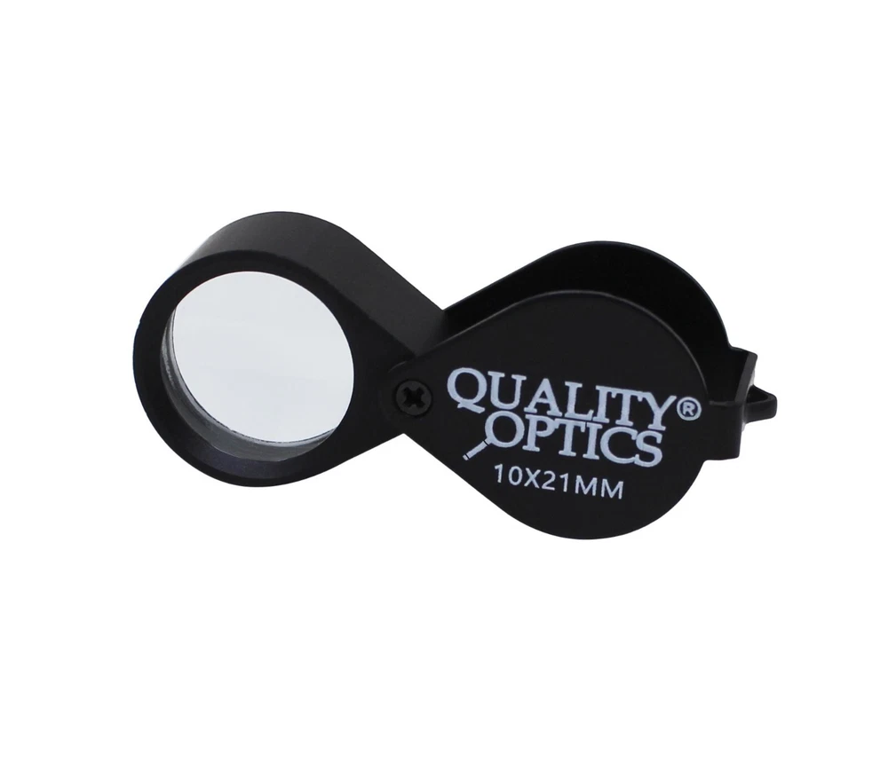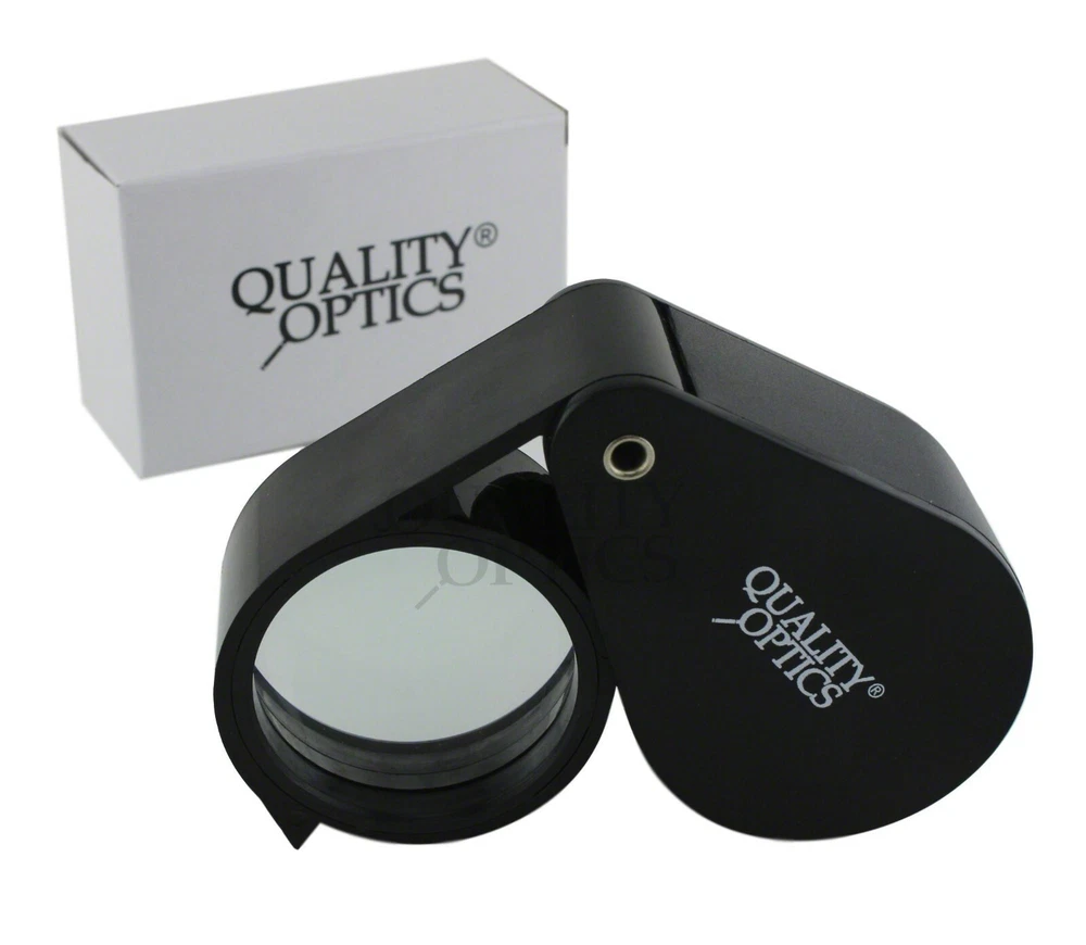 Hastings Triplet (#1 Seller) (Chrome or Black) Hastings Lens Features 10X Magnification, Triple Chrome Plated Brass Body, Tapped with Bezel Ring, Bale Loop can be attached to Lanyard or Chain Compact, carry in pocket or purse, Folding Housing protects case when not in use Includes Storage Case, QO-USA Since 2008 10X Economy Black Loupe 21 mm Optical Grade GLASS Lens Features 10X Magnification, Lightweight Anodized Aluminum Body, Tapped with Bezel Ring, Bale Loop can be attached to lanyard or chain Compact, carry in pocket or purse, Folding Housing protects lens when not in use. Includes Storage Case Quality Optics, USA - Since 2008 Long Reach 10x Push Button Illuminated 21mm (3/4”) 10X Optical Grade Precision Ground GLASS Lens. Features a Lifetime 3mm LED light uses 3 replaceable AG10, LR1130, 389A button cell batteries ABS Body Tapped with Bezel Ring, Bale Loop can be attached to Lanyard or Chain Carry in pocket or purse, Folding (Pink) Anodized Aluminum Housing Cover protects lens when not in use. Includes Storage Case, QO-USA Since 2008, Closed 2-5/8" fully extended 5" 10x 20x Double Jewelers Loupe 18mm & 12mm Optical Grade Precision Ground GLASS Lenses Features 10X or 20X Magnification, Triple Chrome Plated Brass Body, Tapped with Bezel Ring, Bale Loop can be attached to Lanyard or Chain Compact, carry in pocket or purse, Folding Housing protects lens when not in use. Includes Storage Case Quality Optics, USA - Si nce 2008 Extra Large Fold Away Loupe 50mm (2”) 10X Optical Grade Precision Ground GLASS Doublet Lenses Oversize body is easy to handle. Carry in pocket or purse, Folding Housing protects lens when not in use. Quality Optics, USA - Since 2008 30x Pink Loupe 25mm (1”) 30X Optical Grade Precision Ground GLASS Lens. Features (2) 3mm Lifetime 3mm LED light uses 3 replaceable AG10, LR1130, 389A button cell batteries ABS Body Tapped with Bezel Ring, Bale Loop can be attached to Lanyard or Chain Carry in pocket or purse, Folding (Pink) Anodized Aluminum Housing Cover protects lens when not in use. Includes Storage Case, QO-USA Since 2008 Classic 10x Jewelers Loupe 18mm Optical Grade Precision Ground GLASS Element Features 10X Magnification, Triple Chrome Plated Brass Body, Tapped with Bezel Ring, Bale Loop can be attached to Lanyard or Chain Compact, carry in pocket or purse, Folding Housing protects case when not in use Includes Storage Case Quality Optics, USA - Since 2008 Double Folding 5x 10x Loupe Features 2 30mm 5X Power Optical Grade Acrylic Lenses Magnification can combine for 10X Compact, carry in pocket or purse, Folding Housing protects lens when not in use. Quality Optics, USA - Since 2008 Triple Lens Fold Away Loupe Features (3) 21mm 5X Power Optical Grade Acrylic Lenses Magnification can combine for 15X Compact, carry in pocket or purse, Folding Housing protects lens when not in use. Quality Optics, USA - Since 2008 20x Switch Illuminated Dual LED 18mm (0.70”) 20X Optical Grade, Precision Ground GLASS Lens. Features 2 Lifetime 3mm LED light, uses 3 replaceable AG10, LR1130, 389A button cell batteries Triple Chrome Plated Brass Body, Tapped with Bezel Ring, Bale Loop can be attached to Lanyard or Chain Carry in pocket or purse, Folding Housing Cover protects lens when not in use. Includes Storage Case & Battery Cover & Key, QO-USA Since 2008