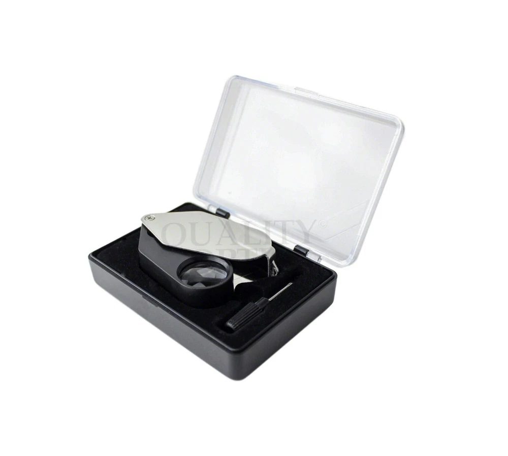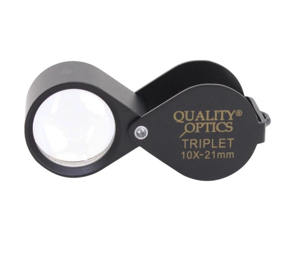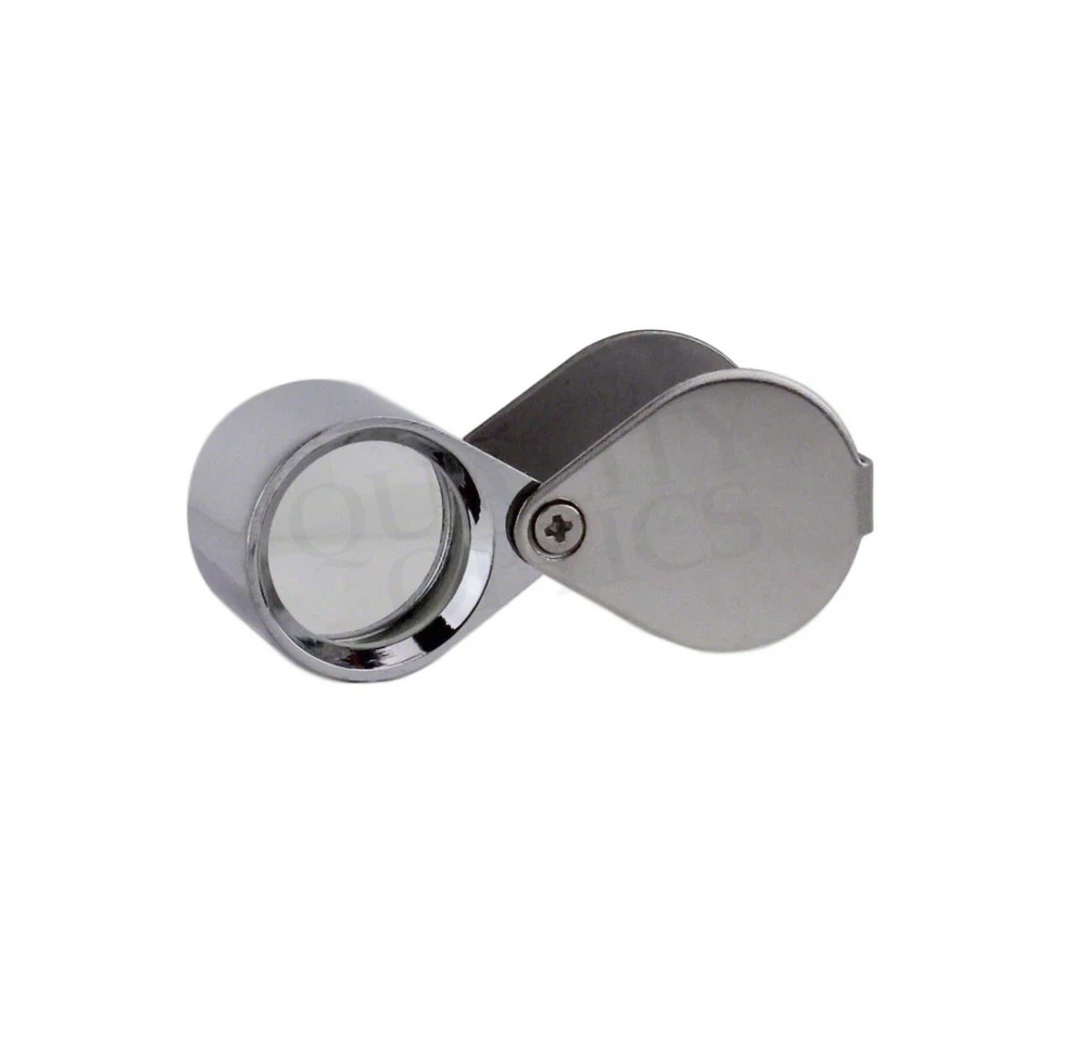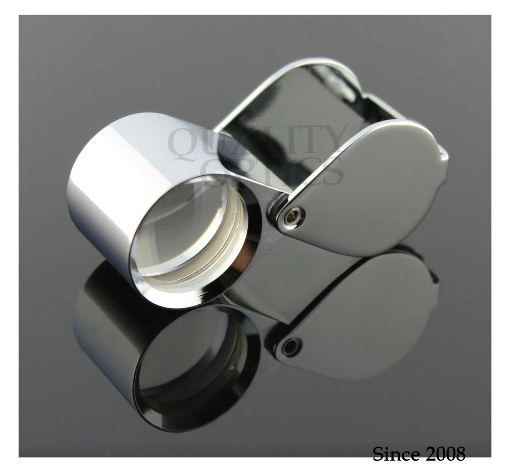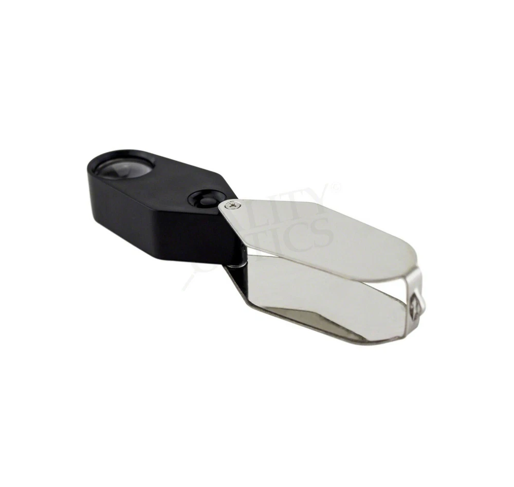 Hastings Triplet (#1 Seller) (Chrome or Black) Hastings Lens Features 10X Magnification, Triple Chrome Plated Brass Body, Tapped with Bezel Ring, Bale Loop can be attached to Lanyard or Chain Compact, carry in pocket or purse, Folding Housing protects case when not in use Includes Storage Case, QO-USA Since 2008 10X Economy Black Loupe 21 mm Optical Grade GLASS Lens Features 10X Magnification, Lightweight Anodized Aluminum Body, Tapped with Bezel Ring, Bale Loop can be attached to lanyard or chain Compact, carry in pocket or purse, Folding Housing protects lens when not in use. Includes Storage Case Quality Optics, USA - Since 2008 Long Reach 10x Push Button Illuminated 21mm (3/4”) 10X Optical Grade Precision Ground GLASS Lens. Features a Lifetime 3mm LED light uses 3 replaceable AG10, LR1130, 389A button cell batteries ABS Body Tapped with Bezel Ring, Bale Loop can be attached to Lanyard or Chain Carry in pocket or purse, Folding (Pink) Anodized Aluminum Housing Cover protects lens when not in use. Includes Storage Case, QO-USA Since 2008, Closed 2-5/8" fully extended 5" 10x 20x Double Jewelers Loupe 18mm & 12mm Optical Grade Precision Ground GLASS Lenses Features 10X or 20X Magnification, Triple Chrome Plated Brass Body, Tapped with Bezel Ring, Bale Loop can be attached to Lanyard or Chain Compact, carry in pocket or purse, Folding Housing protects lens when not in use. Includes Storage Case Quality Optics, USA - Si nce 2008 Extra Large Fold Away Loupe 50mm (2”) 10X Optical Grade Precision Ground GLASS Doublet Lenses Oversize body is easy to handle. Carry in pocket or purse, Folding Housing protects lens when not in use. Quality Optics, USA - Since 2008 30x Pink Loupe 25mm (1”) 30X Optical Grade Precision Ground GLASS Lens. Features (2) 3mm Lifetime 3mm LED light uses 3 replaceable AG10, LR1130, 389A button cell batteries ABS Body Tapped with Bezel Ring, Bale Loop can be attached to Lanyard or Chain Carry in pocket or purse, Folding (Pink) Anodized Aluminum Housing Cover protects lens when not in use. Includes Storage Case, QO-USA Since 2008 Classic 10x Jewelers Loupe 18mm Optical Grade Precision Ground GLASS Element Features 10X Magnification, Triple Chrome Plated Brass Body, Tapped with Bezel Ring, Bale Loop can be attached to Lanyard or Chain Compact, carry in pocket or purse, Folding Housing protects case when not in use Includes Storage Case Quality Optics, USA - Since 2008 Double Folding 5x 10x Loupe Features 2 30mm 5X Power Optical Grade Acrylic Lenses Magnification can combine for 10X Compact, carry in pocket or purse, Folding Housing protects lens when not in use. Quality Optics, USA - Since 2008 Triple Lens Fold Away Loupe Features (3) 21mm 5X Power Optical Grade Acrylic Lenses Magnification can combine for 15X Compact, carry in pocket or purse, Folding Housing protects lens when not in use. Quality Optics, USA - Since 2008 20x Switch Illuminated Dual LED 18mm (0.70”) 20X Optical Grade, Precision Ground GLASS Lens. Features 2 Lifetime 3mm LED light, uses 3 replaceable AG10, LR1130, 389A button cell batteries Triple Chrome Plated Brass Body, Tapped with Bezel Ring, Bale Loop can be attached to Lanyard or Chain Carry in pocket or purse, Folding Housing Cover protects lens when not in use. Includes Storage Case & Battery Cover & Key, QO-USA Since 2008