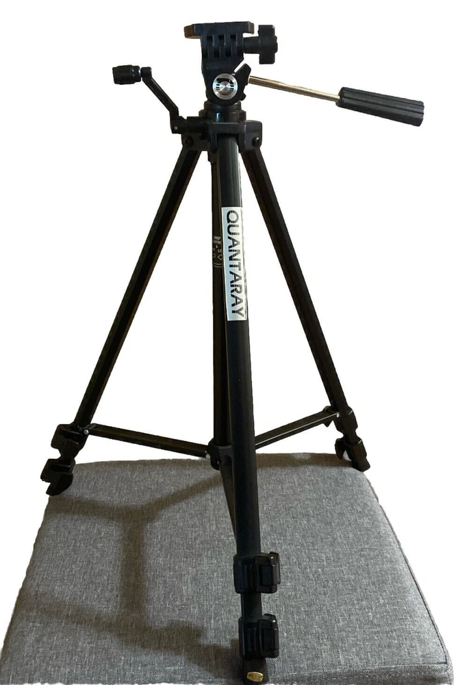 This Quantaray tripod is a reliable support for your camera or camcorder. With a maximum height of 53 inches, it provides a stable platform for still and video cameras. The adjustable legs, rubber foot, and foldable design make it easy to transport and set up. The pan/tilt head allows for smooth and precise camera movements. Made of aluminum, this tripod is durable and built to last. It comes with quick-release and adjustable features, making it suitable for a variety of cameras and camcorders. Whether you're a professional videographer or a beginner, this tripod is a great investment for your photography equipment. Please refer to the pictures for the best details and the exact item you will receive.