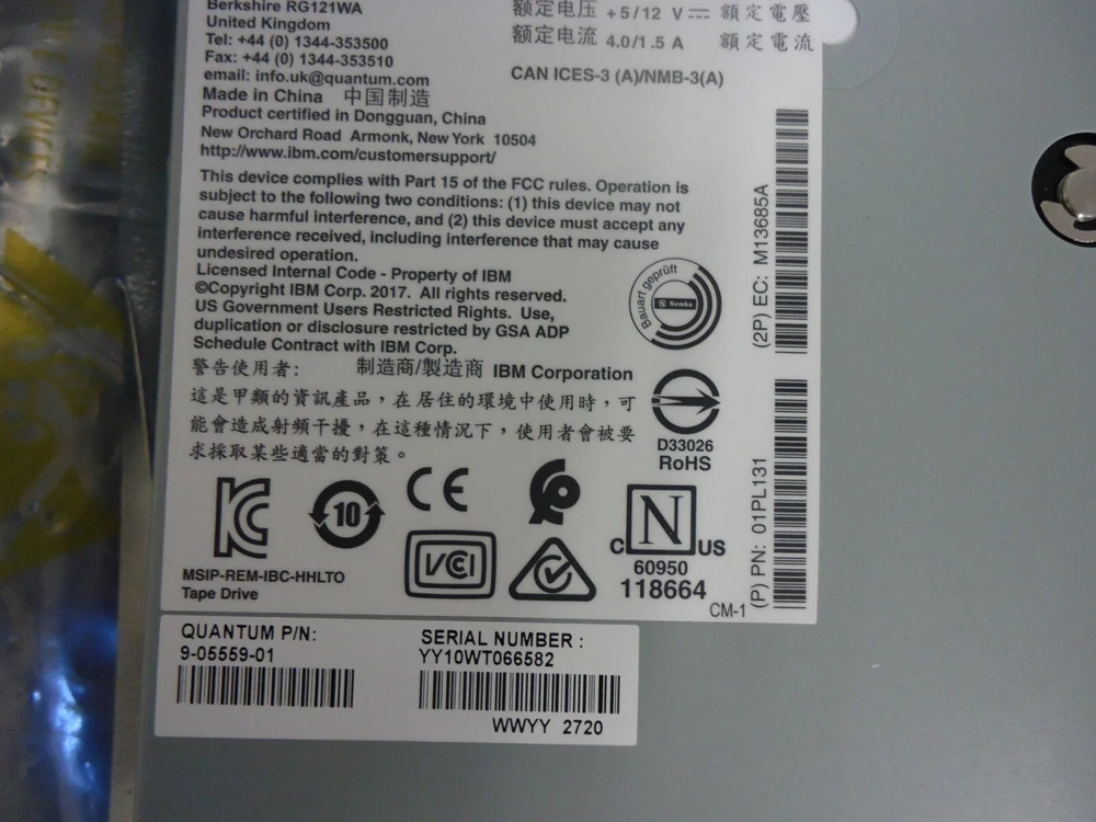 Up for auction is a Quantum LTO Ultrium 8H SAS Internal Tape Drive 01PL131 9-05559-01. This is untested, we have no means of testing it. We got it from a liquidated lot from a closing business. Cannot confirm functionality, but as you can see in the photos it looks to be in very clean shape. This auction is for the drive only as pictured and described. There are no additional unmentioned accessories included. ################################################################# We strive for customer satisfaction. If you have any problems with your purchase, contact us directly. Opening an eBay claim is a last resort option intended for sellers who are uncooperative. We work with all of our buyers to achieve the best outcome for every purchase. The pictures are of the actual item. Buyer pays shipping which is calculated by EBay based on dimensions, weight, and location shipped through UPS ground. All of our auction items are available for local pickup. We value feedback as well as star ratings and welcome any questions pertaining to this item. About BoxQ Headquartered in Georgetown, MA, BoxQ is a nationwide reseller-recycler of off-lease and obsolete electronic goods and technology equipment. We are open 9:00AM through 5:00PM EST Monday through Friday. We are not available to answer any questions on Weekends or Holidays. ----------------------------------- Customer Service Policy Any product or service that is advertised for sale is sold "as-is" unless otherwise noted in the description, whether the product is advertised as "New" or "Used", "Sealed" or "Opened". All warranties on new products are covered by the original manufacturer's policies. We do not guarantee batteries on any type of unit, even on "tested" or warrantied units. This includes PRAM or BIOS batteries on computers, laptop batteries, phone batteries, or any other type of battery. Please understand what you are buying before you place the order. We are not responsible for product incompatibilities. ----------------------------------- Payment Details We accept PayPal payments for any item won. ------------------------------------ Shipping Policy Items are available for pickup. Shipment insurance is included on all shipments. We ship all orders within 3 business days from date of payment clearing. We will not ship COD. The listed shipping rate is calculated by EBay through UPS from our Massachusetts location to your zip code and is for the 48 contiguous states only. If a quote is required for large items, email your zip code, item number and whether the item will be shipping to a business or residential address. Buyers agree to cover any extra shipping costs, if they are necessary. We will not ship ouside the USA. ----------------------------------- Return Policy If the item is defective upon receipt, please email us within 5 days of receipt. Customer is responsible for all return shipping charges. Call tags are not available. A 20% restocking fee is charged on all returns. Shipping charges are not refundable for any purchases.