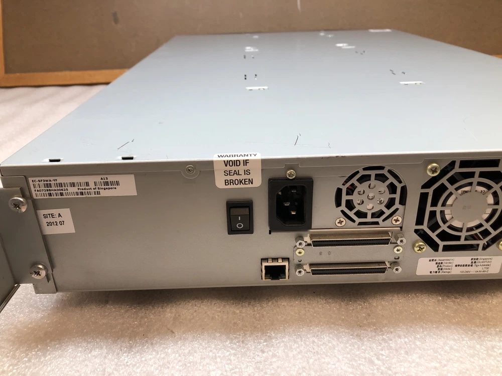 Ebay Listing Grid template example Product Photo Description Quantum SuperLoader 3 L700 Automated Tape Storage with PWR CABLE and RACK EARS Quantum SuperLoader 3 L700 Automated Tape Storage with PWR CABLE and RACK EARS The Quantum SuperLoader 3 L700 is an advanced automated tape storage solution designed for efficient data management and backup. With its user-friendly interface and robust features, it's perfect for businesses looking to streamline their archival processes. Specifications Model Number: EC-SF3WA-YF Storage Capacity: Supports multiple tape formats Data Transfer Rate: Up to 360TB native storage Interfaces: SAS, FC Form Factor: 2U rack-mounted Drive Technology: LTO Ultrium technology Compatible with popular backup software Automatic tape loading and unloading Weight: Approximately 34 lbs Key Features Automated tape handling for improved operational efficiency Scalable architecture to accommodate growing data needs Robust data protection with multiple tape roles User-friendly interface for easy management Designed for high availability and minimal downtime Important Notes Minor scratches, scuffs, and scrapes from previous use and storage. Included Power Cable/Charger Not Included Power adapter/cable (unless specified as included) Backup software Additional storage media Rack mount kit (unless stated) Specifications Functional Condition: F3 - Key Functions Working Equipment in this category has undergone testing to confirm that its core functionalities are operational. Essential functions that a typical user would expect are verified working. Secondary functions or software may not be present or configured. Units may be missing components or parts that are not essential to key functions. Cosmetic Condition: C4 - Used Good Good overall used condition. Some light scratches or scuffs. No dents, dings or cracks. Data Sanitization: S3 - Data Clear Device has been sanitized by one of the following methods: Factory Reset, NIST 800-88 Clear, or DOD 5220.22 Mpn EC-SF3WA-YF Function Tests Powers On Passed Physical Inspection Passed Functions Passed Buttons Passed Shipping Tracking information is automatically uploaded to ebay once your order ships. We ship orders within the contiguous US with FedEx or USPS at our discretion. We use eBay's shipping calculator for all shipping rates. PO Box, HI, AK, APO/FPO/DPO, and PR orders must be shipped via USPS. Please contact us or request an adjusted invoice before checking out. Local Pickup If you have purchased an item and prefer to pick it up, please select “Local Pickup” from the shipping options during checkout. Then please contact us to arrange pickup. Payment must be made through ebay prior to pickup. Combined Shipping We can typically provide a 30% shipping discount for multiple purchases that will fit in the same box. For combined shipping, please click 'Request Total' or send us a message before checking out. We can then adjust your invoice for combined shipping. Expedited Shipping In order to guarantee the rates and transit times shown, we must receive your order with its payment cleared by 12:00 PM EST during business days. Orders placed after 12:00 PM EST will be shipped on the next business day. Orders placed on weekends or holidays will be shipped the next business day. Please plan your orders accordingly. Returns We strive to be a 5 star seller and hope that you are happy with your purchase. If there is a problem with your order, please contact us through eBay messages or by phone before leaving feedback. For items that are tested and working properly: Our return window for working items listed as "New" or "Used" is 30 days. If the item is no longer wanted or does not fit, the buyer is responsible for return shipping. If the item is not working as described, we will work with you on the issue, please contact us to resolve. Please review all product details and sale terms before making a purchase.