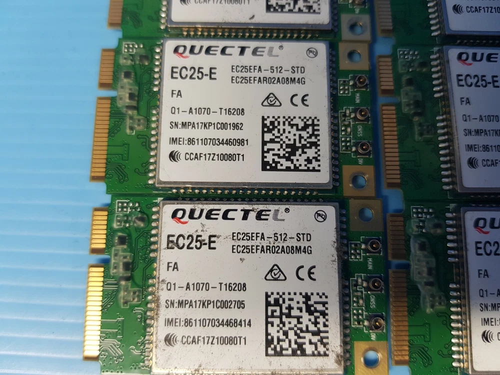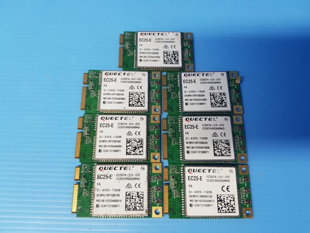 Quectel EC25-E Mini PCIe IoT/M2M optimized LTE Cat 4 Module 150Mbps Lot of 7 Used condition, 30 days warranty. See All Pictures. Actual Picture of the item is provided. What you see in the picture(s) is what you get. Thanks for watching and good luck. If you have any question feel free to ask.