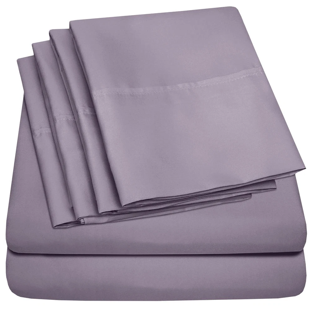 Indulge in the ultimate luxury and comfort with our luxurious fine double brushed microfiber 6-piece sheet set. Crafted from premium quality microfiber, this sheet set offers unparalleled softness and comfort for a truly luxurious night's sleep. The double brushed microfiber fabric is incredibly soft to the touch, providing a gentle caress against your skin for a cozy and comfortable sleep experience. Designed for optimal comfort and durability, our sheet set features a deep pocket design that accommodates mattresses up to 16 inches deep, ensuring a secure and snug fit. The elasticized edges keep the fitted sheet in place throughout the night, preventing it from slipping or bunching up for a hassle-free sleep experience. In addition to their luxurious comfort, our sheet set is also highly breathable, making it ideal for sensitive skin. The breathable fabric allows for optimal airflow, keeping you cool and comfortable throughout the night, and promoting a healthier sleep environment. Say goodbye to wrinkled and faded sheets with our durable microfiber sheet set. The double brushed microfiber fabric is naturally -resistant, ensuring a smooth and pristine appearance wash after wash. Additionally, the fade-resistant color ensures that your sheets retain their vibrant hue, adding a touch of elegance to your bedding ensemble for years to come. Cleaning and maintaining our sheet set is effortless. Simply machine wash in cold water and tumble dry on low heat for quick and convenient cleaning. The durable microfiber fabric is shrink-resistant and colorfast, ensuring that your sheets retain their softness, color, and shape wash after wash, making them a long-lasting and investment in luxurious comfort. Treat yourself to the ultimate luxury and comfort with our luxurious fine double brushed microfiber 6-piece sheet set and transform your bedroom into a serene and inviting retreat ELASTIC CORNERS BUILT IN - What separates our bed sheets from the rest are the special elastic sheet straps built in. These elastic corners keep your fitted sheet secure to the bed and come on all of our sheets. SLEEP IN LUXURY – No more sleepless nights on uncomfortably itchy sheets! Sleep soundly on the softest 1500 Supreme Deluxe Collection sheets. Be warned, though: You may never be an early bird again! SUPERB SHEET SET – Each luxurious set has 1 fitted, 1 flat sheet, and 4 pillowcases (NOTE: Twin & Twin XL sizes include 2 pillowcases). Deep pockets, thick elastic, and BUILT IN SHEET STRAPS make your new soft sheets stay in place! STAY CLEANER, LONGER – Who has time to wash their sheets every few nights? When it’s time for a wash, machine wash cold, and tumble dry low. PERFECT FIT FOR ANY BED – Sleep soundly for years to come! Your deep pocket sheets are fade, shrink, and resistant. We’ve got you (and your bed) covered.