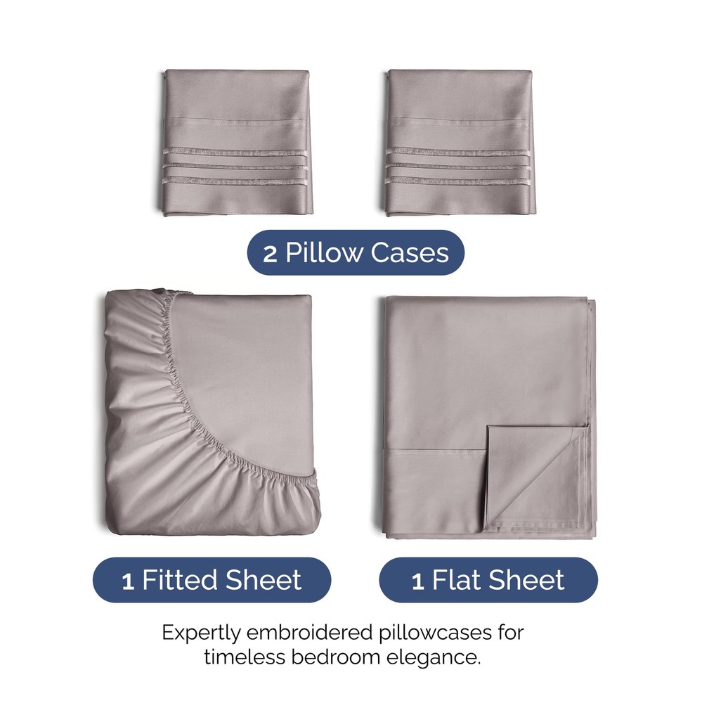 4 PIECE BED SHEET SET: 2 pillow cases and a flat sheet and fitted sheet. Flat Sheet (102”x 90”) Fitted Sheet (80”x 60”) 2 Pillow Cases (20” x 30”). DEEP POCKETS/ EASY FIT: They fit mattresses up to around 16 inches deep. If your mattress is smaller than 16 inches it will fit just fine. A lot of mattresses are pretty big these days and we feel this is a good universal size that fits most mattresses. FEEL THE DIFFERENCE: If you're looking for very soft sheets you have found them! They're breathable, cool and super silky soft. The comfort of these sheets will have you coming back! They're softer than Egyptian cotton and organic cotton sheets! Best for any room in your house - bedroom, guest room, RV, vacation home. Great gift idea for everyone. HIGHEST QUALITY BRUSHED MICROFIBER: A lighter difference. A softer, finer touch. These are made of the highest quality double brushed microfiber yarns. The virtually weightless wonder of sheets will have you coming back for more. Linger in your dreams. GREAT SHEETS FOR THE PRICE! These are some of the softest and most affordable sheets you’ll find. Great bang for your buck as far as comfort and softness and unlike many other very expensive sheets & materials, these CGK Bed Sheets will give you comfort and softness at a reasonable price.