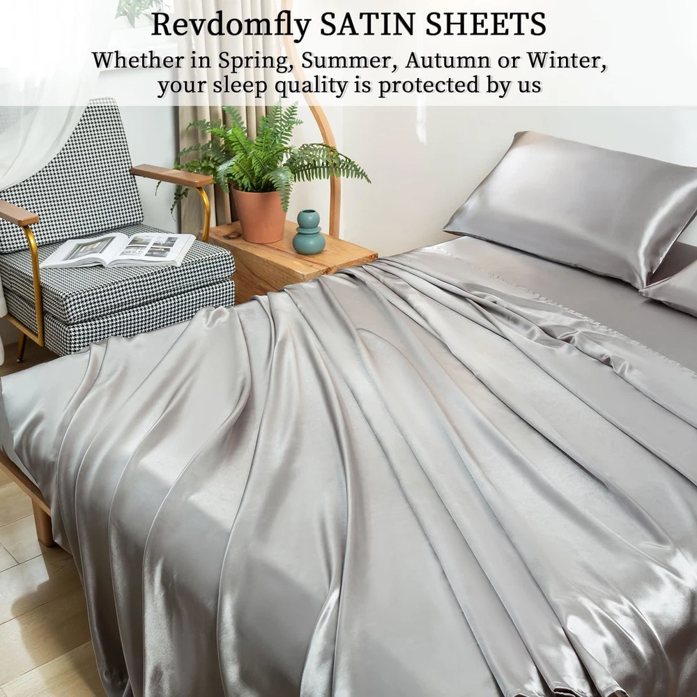 Fast Shipping Great Customer Support Satisfaction Guaranteed DESCRIPTION Shipping Shipping Shipping All domestic packages are shipped for Free (Unless other shipping method was selected during the checkout) Most items ship and arrive much sooner than the estimate delivery date. Usually within 2-3 days from payment. However, we have longer estimates to compensate for the occasional delay or supply chain breakdown. We do not accept P.O. BOXES - PLEASE PROVIDE A PHYSICAL ADDRESS Return Return Return In the event that you would like to return your purchase, we allow returns that are processed within the defined return date (the return date is to be found in the return policy/shipping and handling section) Please contact us for a return authorization and the return shipping address. Payment Payment Payment PayPal is our preferred method of payments it's the quickest, easiest and most secure way to pay for your goods or services online. PayPal offers buyer and seller protection should there be a problem. If you do not have a PayPal account, to get started and buy your first item with us is very easy. Simply click on the 'Buy It Now' button and follow the eBay checkout steps. Select PayPal as the payment method you then will be given the chance to enter your card details in to PayPal's secure checkout in order to pay for your order. Once the payment has been made, you will then be given the opportunity to make your own PayPal account to make paying for your items in the future very easy. Should there be a problem with payment please do let us know. Feedback Feedback Feedback Customer satisfaction is very important to us. If you have any problem with your order,please contact us and we will do our best to make you satisfied, please do not leave a negative feedback before we resolve your problem. We guarantee that your issue will be solved quickly. As long as you are happy with your purchase of , please leave us a positive feedback. Your feedback is very important to us it affects our search placement on eBay. We will leave a positive feedback for you in return automatically once we receive your feedback. Contact Us Contact Us Contact Us If you have any queries, please contact us via ebay. We usually respond within 24 hours on weekdays. Thank you for visiting our ebay store! 💎Reasons for Choosing us💎Revdomfly's upgraded fabric after thousands of tests can better balance the body temperature; It can absorb most of the heat in summer, so that you can still feel as cool as ice in hot summer;In winter, the temperature can also be locked on the fabric;At the same time, It can also absorb moisture, keep you cool and dry all night, which is the gospel of the people with night sweats; There is no perfect satin sheets, only Revdomfly that is infinitely close to perfection 💎Don't be Fooled by Its Gorgeous Appearance💎Do you think the more beautiful things are, the more they need to be taken care of? Revdomfly has successfully passed tens of thousands of washing machine washing tests and sharp object friction tests; Truly excellent Satin sheet sets stand the test;You can toss around on the bed without worry that the sheet set will be scratched by you; This sheet set is Wrinkle and Fade resistant;Just wash it in cold water with a washing machine;Do not bleach Reasons for Choosing Revdomfly Revdomfly's upgraded fabric after thousands of tests can better balance the body temperature; It can absorb most of the heat in summer, so that you can still feel as cool as ice in hot summer;In winter, the temperature can also be locked on the fabric;It's really warm in winter and cool in summer; At the same time, It can also absorb moisture, keep you cool and dry all night, and eliminate bad sleep experience, which is the gospel of the people with night sweats International products have separate terms, are sold from abroad and may differ from local products, including fit, age ratings, and language of product, labeling or instructions Queen Size Silky Soft Gray Satin Sheet Set, 4 Pcs, Fits 16" Deep Pocket Click here to see description Fast Shipping Great Customer Support Satisfaction Guaranteed DESCRIPTION Shipping All domestic packages are shipped for Free (Unless other shipping method was selected during the checkout) We ship within two business days of payment, usually sooner Standard FREE shipping takes between 3-5 business days Expedited shipping takes between 2-3 business days Overnight shipping takes between 1-2 business days We do not accept P.O. BOXES - PLEASE PROVIDE A PHYSICAL ADDRESS We Ship Globally using ebay's GSP, the item is sent to a logistic center in KY and shipped from there to the rest of the world. International customers are responsible for all duties and taxes Contact your local authority for questions related to the amount of duties or taxes you will be responsible for Return In the event that you would like to return your purchase, we allow returns that are processed within the defined return date (the return date is to be found in the return policy/shipping and handling section) Please contact us for a return authorization and the return shipping address. Please contact us for a Return Merchandise Authorization (RMA) number. We advise you to use a reputable carrier service when returning your goods. Please pack all returns appropriately. We ship globally Via eBay's global shipping program (GSP). Thus we don't cover returns for items shipped globally. Buyers returning such items will be refunded ONLY for the item's cost and not for the shipping. please check the Voltage information and make sure it matches the one in your country. In case it's not stated in the description, do ask us. Payment PayPal is our preferred method of payments it's the quickest, easiest and most secure way to pay for your goods or services online. PayPal offers buyer and seller protection should there be a problem. If you do not have a PayPal account, to get started and buy your first item with us is very ea