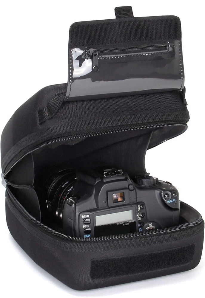 gtin13: 637836607747 To Fit: Camera Compatible Series: SLR Color: Black Zoom Type: Hard Case Material: Eva Item Width: 6.5 in Brand: Usa Gear Features: Zippered accessory, Durable Hook and Loop, Fits with lens, Belt Holster Item Weight: .52 LB Manufacturer Warranty: 3 Years Item Height: 4.5 in Compatible Brand: For Canon, For Nikon, For Olympus, For Samsung, Sony Alpha Compatible Model: Canon EOS M50D, Canon Rebel T5i, Nikon D3400, Olympus OM-D E-M10 Mark III, Samsung NX1, Sony Alpha a9 Item Length: 9.3 in MPN: GRHLHSZ100BKEW UPC: 637836607747