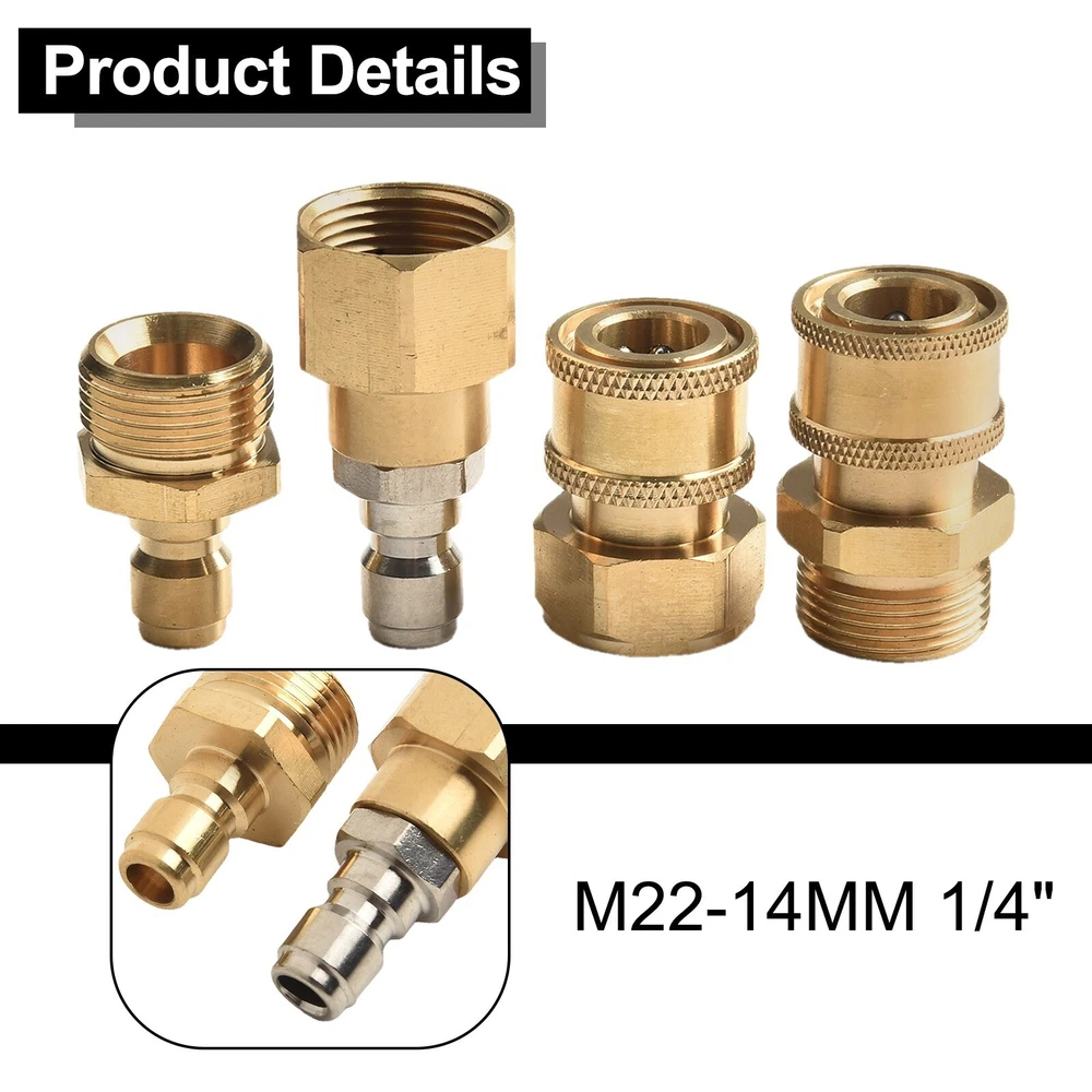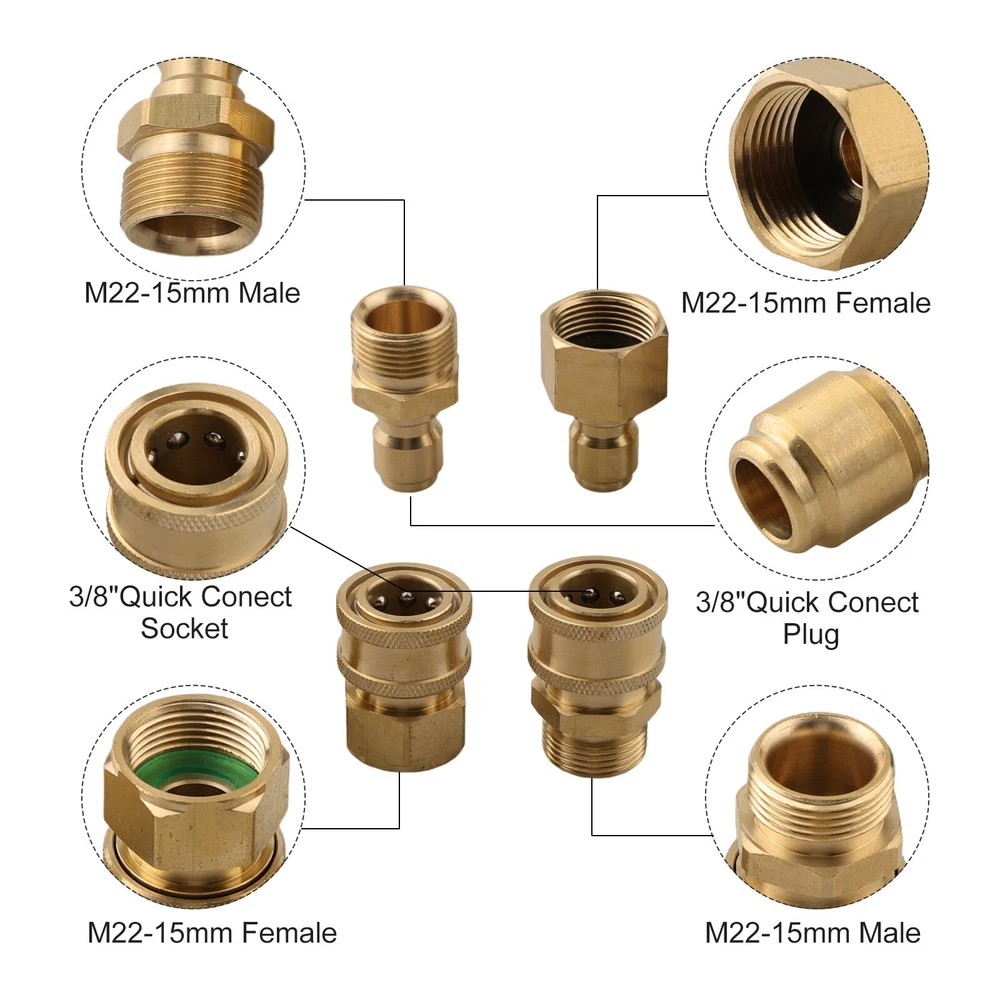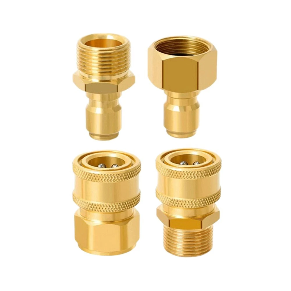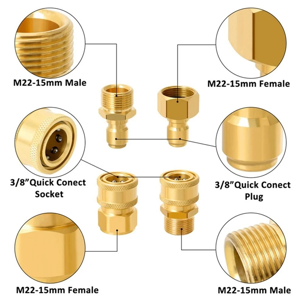 Product Description Features: *Versatile Compatibility: This quick connect adapter set is designed to for adapt to your high-pressure washer hose, with M22-15mm 3/8 inch or 1/4 inch and M22-14mm 3/8 inch or 1/4 inch quick disconnect couplings. *Effortless Connection: The quick connector kit allows for easy and fast connection and disconnection of your high-pressure washer hose. *enduring Brass Construction: Made of high-quality brass material, these connectors are sturdy, rust-proof, corrosion-resistant, and built to last. *Excellent Adapter for High-Pressure Washer Hose: These adapters provide outstanding compatibility with your high-pressure washer hose, a secure fit. *Convenient and Practical: With these quick connect fittings, replacing or switching accessories on your high-pressure washer is hassle-free and user-friendly. Specifications: * Product Name:Quick Connect Adapter *Material:Brass *Size:M22-15mm, M22-14mm *Color:brass *Fitment:High pressure cleaning machine hose *Number of Pieces:1 set Package Content: 4pcs*Male and female connector Note: 1. The real color of the item may be slightly different from the pictures shown on website caused by many factors such as brightness of your monitor and light brightness. 2. Please allow slight manual measurement deviation for the data. Payment Payment must be completed within 5 days. If you have any problems about payment, please contact us via ebay message. Delivery details We only ship to confirmed ebay Order addresses. Please comfirm that your Order address is in line with your shipping address. Please kindly note that the c ombined shipping is not provided because the shipping fee is calculated by weight. Also, the each additional item means exactly the the same color and size. It takes about 7 -15 working days to US; about 10-30 working days to other countries. Transit time may be a little delayed because of the bad weather and customs inspection . If you do not receive your item within 30 working days since payment finished, please contact us immediately for further assistance. Contact us We strive for 100% customer satisfaction! Positive Feedback is very important to us. If you have any questions, p lease feel free to contact us via "Ask seller a question" . We will reply your email within 24 working hours. On Jan 20, 2025 at 10:11:27 PST, seller added the following information: