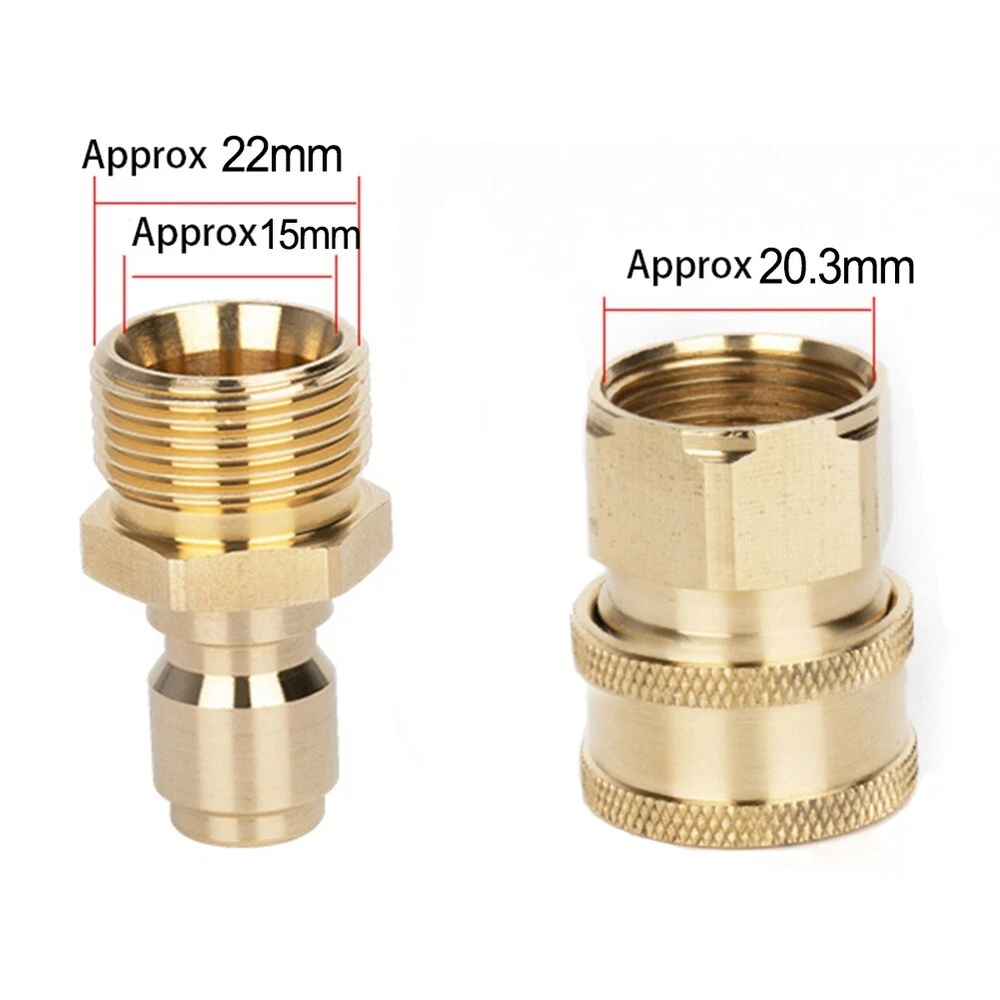 Product Description Feature: * brand new and high quality. *Made of high-quality materials, and practical. *Set of 2 standard Brass Quick Connect Fittings for your pressure washer Hose *It used in a lot of situations where high pressure connections are frequently assembled or disassembled * for quick exchange of spray and nozzles, Max. Working Pressure range: 200bar (3000 psi) *Ball lock design makes sure a solid connection each time, fittings can be used to attach a pressure washer accessories to the water pumps, hose reels, ball valves, telescoping wands, for cleaner or regular spray *1pc Brass M22 Female Pipe Thread Connector and 1pc BRASS M22 Male Pipe Thread Quick Connect Socket Specifications: *Material: Brass + Stainless Steel *Adapter part: 3/8 female quick connect and 3/8 male quick connect (Be sure to check carefully which model you are buying when placing an order.) *Pressure range: 200bar (3000 psi) Package content: 1*3/8 female quick connect 1*3/8 male quick connect Note: 1. The real color of the item may be slightly different from the pictures shown on website caused by many factors such as brightness of your monitor and light brightness. 2. Please allow slight manual measurement deviation for the da Payment Payment must be completed within 5 days. If you have any problems about payment, please contact us via ebay message. Delivery details We only ship to confirmed ebay Order addresses. Please comfirm that your Order address is in line with your shipping address. Please kindly note that the c ombined shipping is not provided because the shipping fee is calculated by weight. Also, the each additional item means exactly the the same color and size. It takes about 7 -15 working days to US; about 10-30 working days to other countries. Transit time may be a little delayed because of the bad weather and customs inspection . If you do not receive your item within 30 working days since payment finished, please contact us immediately for further assistance. Contact us We strive for 100% customer satisfaction! Positive Feedback is very important to us. If you have any questions, p lease feel free to contact us via "Ask seller a question" . We will reply your email within 24 working hours.