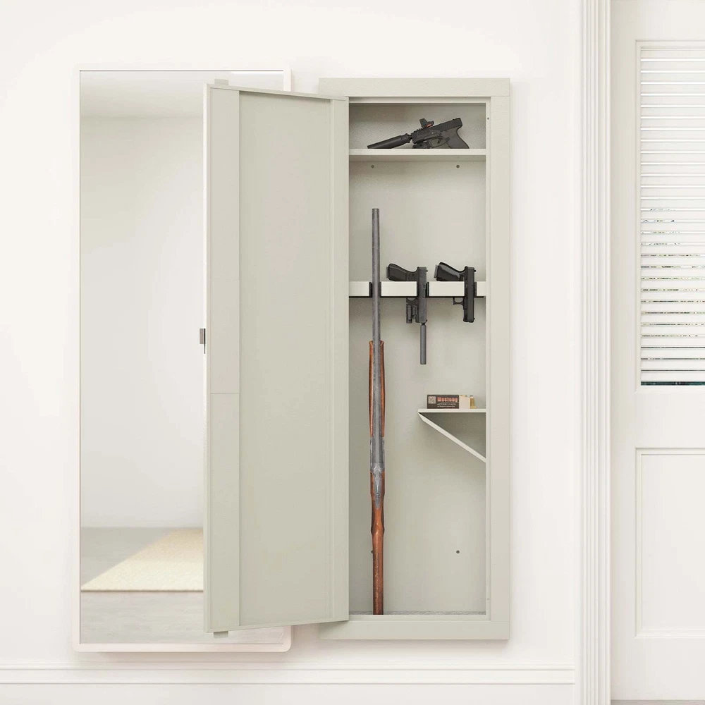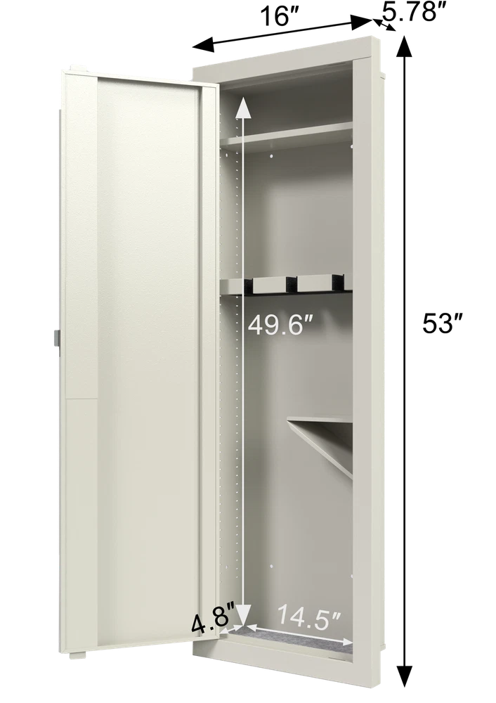 Specifications Place of Origin China Main Color Beige Main Material Steel Dangerous Goods #dangerFlag# Dimensions & Weights Assembled Length (in.) Not Applicable Assembled Width (in.) Not Applicable Assembled Height (in.) Not Applicable Weight (lbs) Not Applicable Product Features [ HIDDEN WALL SAFE ] : The electronic safe can be used in your home or business conveniently and it is easy to conceal behind painting or in a closet. This is the perfect safe to keep your guns and valuables secure. [ LARGE SECRET STORAGE] : This home security in-wall safe is large enough to store your cash, jewelry, guns and etc.. The safe can be mounted to the wall, it is just the right size and easy to hide. [ COMBINATION LOCK ] : Our in-wall safe is designed with keypad . You can set your own password and the digital password makes it easy to unlock. It worked perfectly to keep something away from kids and prevent others from stealing. [ REMOVABLE SHELVES] : There are two removable shelves and one adjustable gun rack, you can make your own storage space. [ DURABLE CONSTRUCTION ] : Made of cold rolled steel, the safe is sturdy enough to avoid damaging. The stable structure also features long-lasting use. Description Adjustable shelf You can put one pistol or some other things on shelf and adjust it according to your needs. Adjustable gun rack The gun rack which holds 3 rifles can be adjusted according to your needs . Touch digital keypad The design of touch digital keypad and knob is convenient for you to open the door of the cabinet .