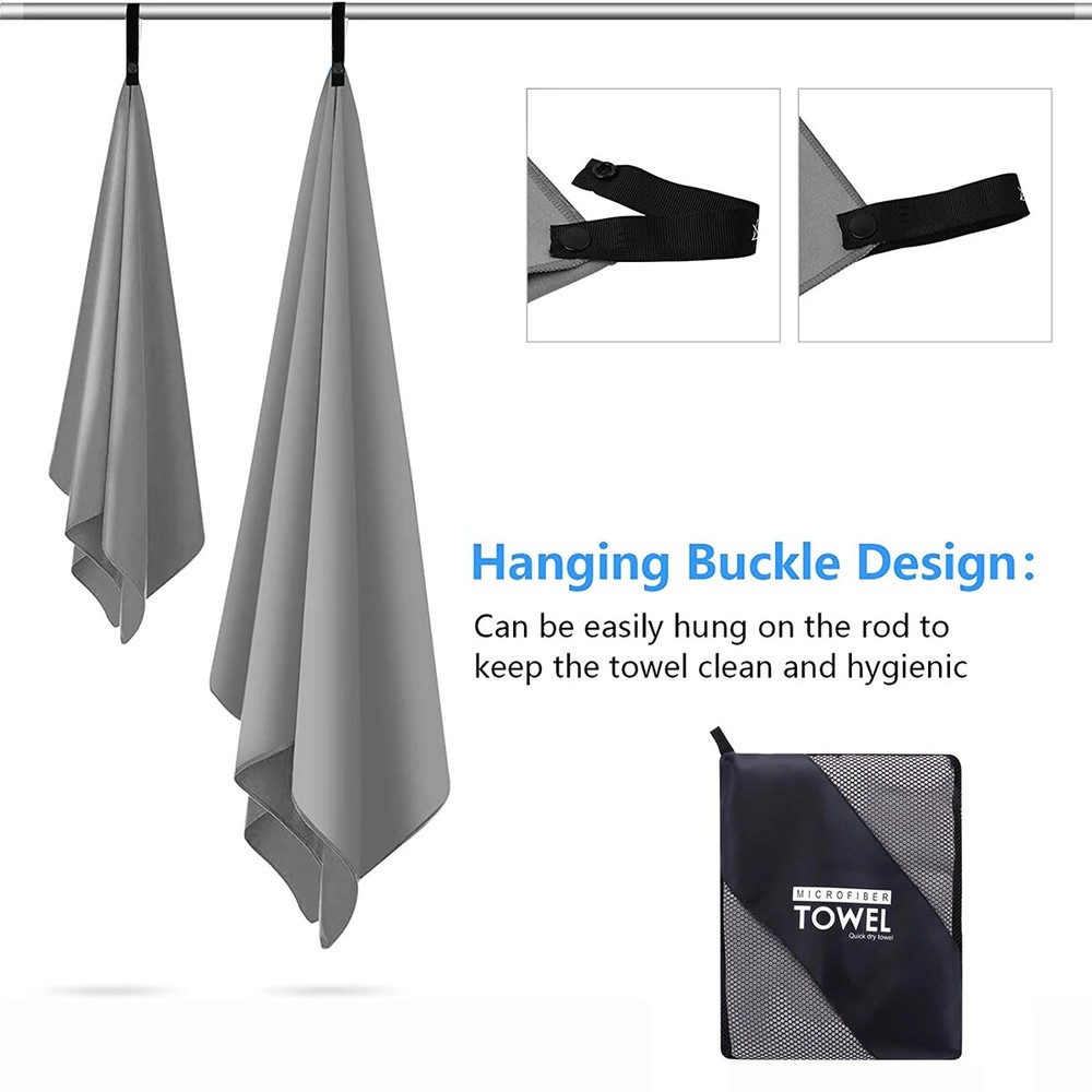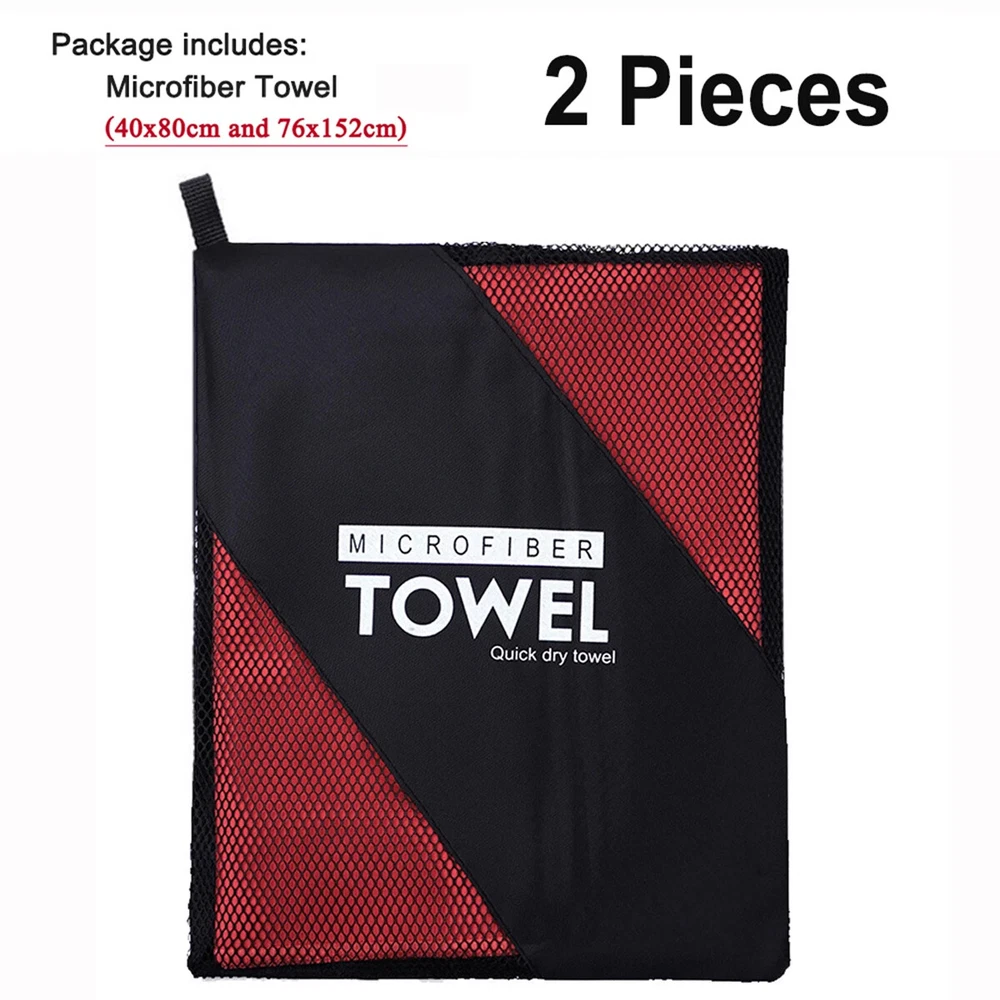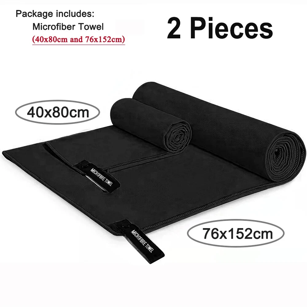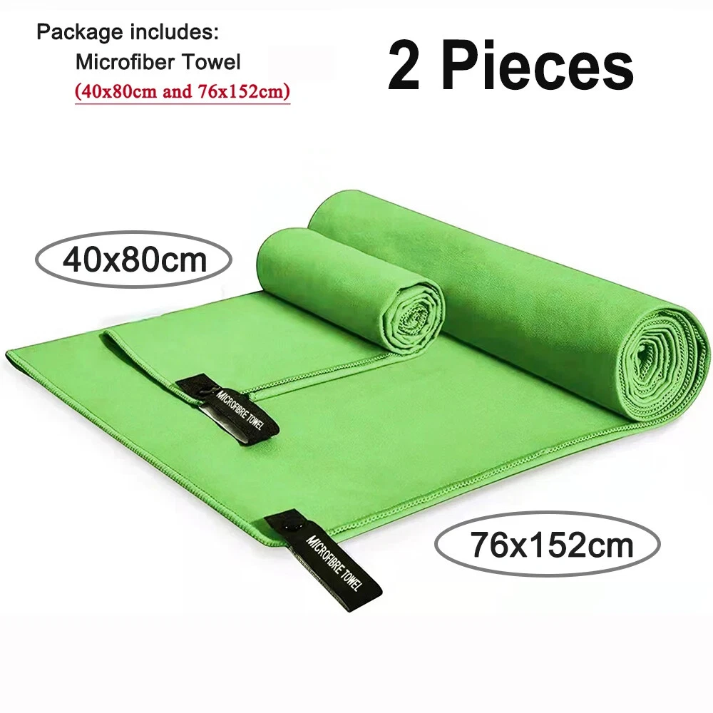 Quick Drying Microfiber Towels / Beach Towel / Sports Travel Swimming Towel / 2 Pieces Two pieces towel includes : One face/hand towel 40x80cm with one Extra Large 76x152cm Ultra-Soft microfiber fast drying towel Quick Drying : Dry up to 10 times faster than normal towels. Hang it outside and it will be dry very soon. Super Absorbent: This Ultra-Soft towel can hold up to 5 times water of it's weight. Easy to Carry Out: Light weight towels come with one carry bag. Towels with sturdy snap loop. Perfect for hanging out to dry.