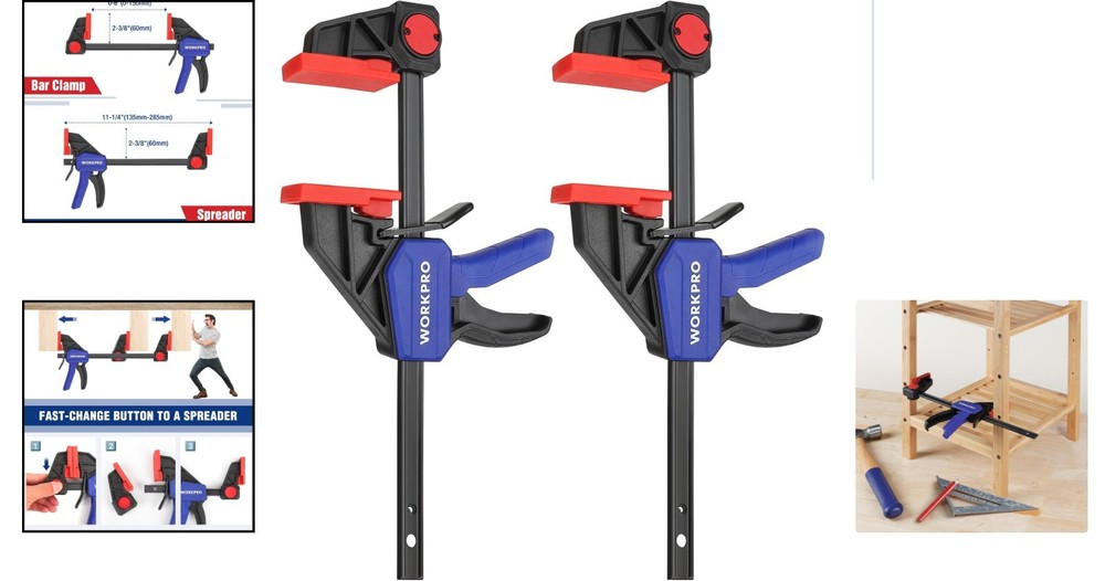 Quick-Release 6-Inch Wood Clamps, 2-Pack | 150 lbs Load Limit for Woodworking ‹ › ‹ › ‹ › ‹ › ‹ › ‹ › ‹ › ‹ › ‹ › ‹ › Quick-Release 6-Inch Wood Clamps, 2-Pack Enhance your woodworking experience with our Quick-Release Wood Clamps, designed for both efficiency and elegance in craftsmanship. These clamps are perfect for professional carpenters, cabinet makers, and DIY enthusiasts. Key Features: Excellent Clamping Force: Powerful clamping force of up to 150 pounds ensures your workpieces are securely held in place. Lightweight yet Sturdy: Crafted for durability and strength, allowing quick tightening and easy release to save you valuable time. Versatile Clamp & Spreader: Equipped with a fast-change red button for seamless switching between clamping and spreading tasks. Solid Construction: Nylon reinforced with hardened steel bars endure frequent use, ensuring longevity and resistance to bending. Non-Marring Pads: Soft, flexible pads protect surfaces from scratches while enhancing clamping strength with anti-slip textures. Quick Adjustment: A quick-release lever enables rapid distance adjustments for smooth workflow. Ergonomic Handles: Designed to reduce hand fatigue, offering a comfortable grip for prolonged use and control during clamping. Benefits: Secure grip enhances the quality of your finished projects. Lightweight design makes them easy to handle without sacrificing strength. Non-marring pads protect your beautiful wood surfaces. Quick-release feature allows for efficient transitions between tasks. Ergonomically designed handles provide comfort even during extensive use. Why Choose Our Quick-Release Wood Clamps? Invest in tools that marry functionality with ergonomic design. Our 6-inch Quick-Release Wood Clamps not only provide the incredible clamping strength you need but also the comfort and precision required for fine woodworking. With an impressive load limit and versatile usability, these clamps are designed to elevate your craftsmanship. Don’t allow flimsy tools to compromise your projects. Experience woodworking like never before with our professional-grade clamps—order your 2-pack today and transform your workspace into a sanctuary of creativity and precision! Shipping Free & Fast Shipping - We offer free shipping to most of the USA with a normal delivery time of 3-7 days. However, due to the current situation, additional delivery time (up to 3 weeks) may be required for some items. Alternative Carriers - We may use alternative carriers (e.g. USPS, FedEx, UPS, etc.) to ensure your package arrives safely and on time. Due to the use of multiple carriers, we are unable to provide a tracking number automatically. Handling Time - Orders are processed and shipped within 1-2 business days of receiving cleared payment. Shipping Restrictions - Shipping to Alaska, Hawaii, Puerto Rico, Guam, and other US territories may incur shipping charges or delivery restrictions. Please contact us before ordering, or your order can be refunded/cancelled. State Restrictions - There may be restrictions based on your state of purchase. For example, certain items may not be shipped to California due to state regulations. Contact for Tracking Updates - If you require tracking updates or have any concerns about the delivery of your order, please feel free to contact us, and we will be happy to assist you. Return 30-Day Hassle-Free Returns - We want you to be completely satisfied with your purchase. If you are not, you can return the item within 30 days of receiving it for a full refund or exchange. Easy Return Process - To start a return, simply contact us and we will provide you with a prepaid return shipping label and detailed instructions. Restocking Fee - There are no restocking fees for returns. However, the buyer is responsible for return shipping costs if the return is not due to a seller's error. Refund Processing Time - Refunds will be processed within 5 business days of receiving the returned item in its condition. Payment We accept all major credit cards, PayPal, and Apple Pay for your convenience. Your payment information is secure and encrypted to ensure a safe and seamless transaction. Please complete your payment within 3 days of purchase to avoid any delays in shipping. Feedback Your feedback is extremely important to us. We strive to provide the best products and customer service possible. If you are satisfied with your purchase, please take a moment to leave us a positive review. If you have any concerns or issues with your order, please contact us before leaving negative feedback. We are committed to resolving any problems and ensuring your satisfaction. Contact Us If you have any questions or concerns, please feel free to out to our customer support team. You can contact us through the eBay messaging system. We are available Monday to Friday, 9:00 am to 5:00 pm EST, and we will do our best to respond to your inquiry within 24 hours. Buy it now and enjoy a pleasant shopping experience! Model: Woodworking Clamps Item Width: Woodworking Clamps Item Length: Woodworking Clamps Item Height: Woodworking Clamps Item Diameter: 6 inch Item Weight: 730 grams Unit Quantity: 2 Material: Alloy Steel,Nylon Type: Bar Clamp Number of Pieces: 2 Size: 6 in Color: Multicolor Jaw Size: 6 in