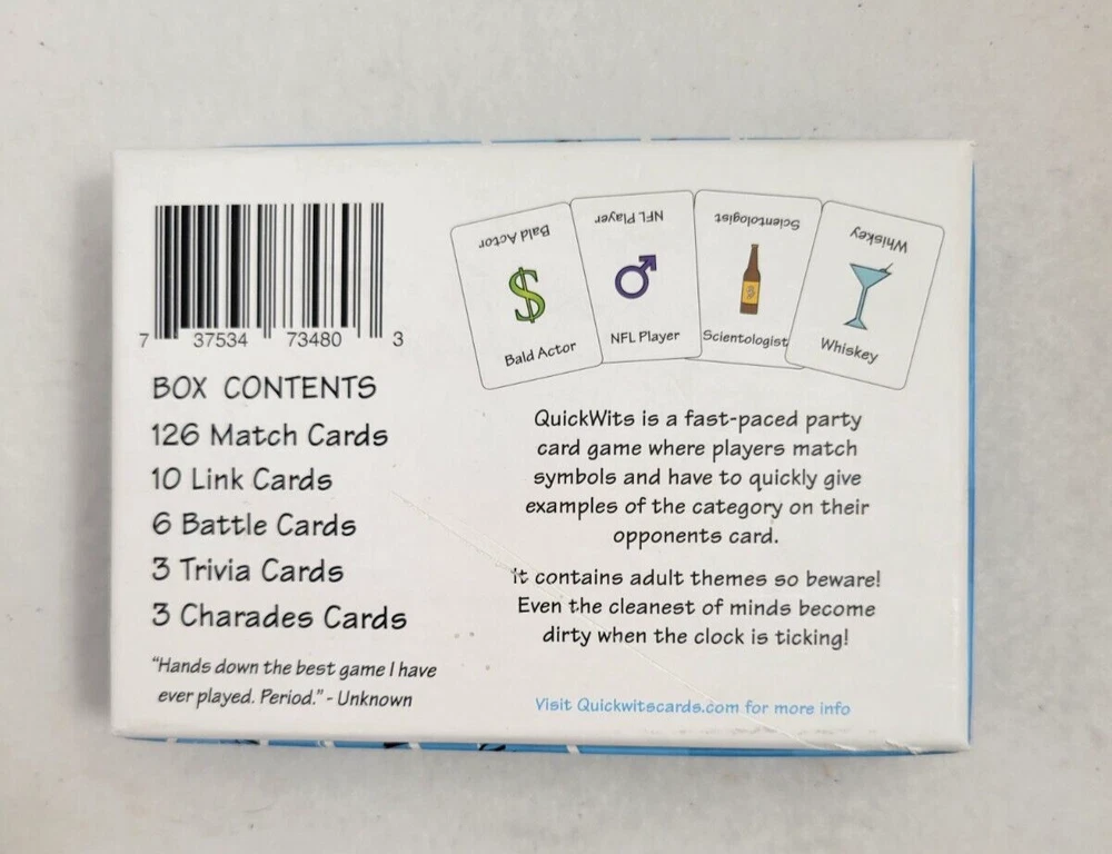 QuickWits Card Game Adult Themes Trivia Charades NEW Each item is carefully packaged to prevent any damage and is shipped immediately with tracking.