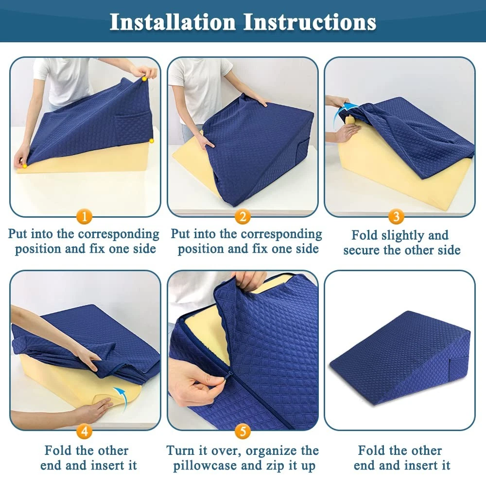 Upgrade Your Comfort with Our Perfect Fit Wedge Pillow Cover! Introducing our luxurious Wedge Pillow Cover, specifically designed to fit our wedge pillows (24" x 25" x 12") ! Say goodbye to ill-fitting covers and wasted cash β with our product, you'll experience the ultimate combination of luxury and comfort. Quilted Triangle Pillowcase for a Touch of Elegance π Experience the silky softness of our microfiber Quilted Triangle Pillowcase, a perfect blend of elegance and coziness. The unique quilted design adds an extra layer of comfort, ensuring you'll have the most restful sleep ever. Plus, the elastic checkered feature makes installation a breeze and adjusts effortlessly to slight size variations. ποΈ Protect and Pamper Your Wedge Pillow Our Slanted Pillow Protector is here to guard your precious foam wedge pillow from dirt and stains. The best part? It comes with a cleverly designed zipper that ensures easy maintenance and hassle-free cleaning! As an added bonus, we've included a convenient side storage bag for your cell phone, TV remote, and other essentials, right within arm's reach! π πΏ Stay Fresh and Clean with Bed Body Pillow Cover πΏ Bid farewell to sweaty nights! Our Pillow Cases are crafted to absorb moisture from your skin, keeping you comfortably dry throughout the night. No more worries about odors or stains β stay fresh and relaxed for a night of uninterrupted sleep. π π§Ί Easy-to-Clean Replacement Cover π§Ί With our Replacement Cover, you'll never have to worry about having a clean pillow again. Pop it in the washing machine with ease, and your pillow will be as good as new! The machine-washable feature ensures that maintaining the cleanliness and freshness of your wedge pillow is a breeze. πΏ Wedge Pillow Cover - This incline pillow case(24" x 25" x 12") is designed to perfectly fit our wedge pillows, no need to waste extra cash on covers that don't fit properly. Quilted Triangle Pillowcase β This silky soft microfiber pillowcase is quilted design,combination of luxury and comfort perfectiy. Elastic checkered pillowcase is convenient for you to install and solve the slight deviation of size. Slanted Pillow Protector With Pocket & Zipper - Key features include a unique zipper, protect your foam wedge pillow from dirt and stains,convenient side storage bag can hold cell phone, TV remote etc. Bed Body Pillow Cover -Pillow cases can absorb moisture in the skin, keep the body dry, neutralize the smell of sweat, and prevent the pillow from being stained or contaminated with odor. Replacement Cover machine Washable - Having a replacement pillow case means you can always have a clean pillow, even when you are washing your original wedge pillow cover,being Machine Washable ensures this wedge pillow protector is easy to keep clean.