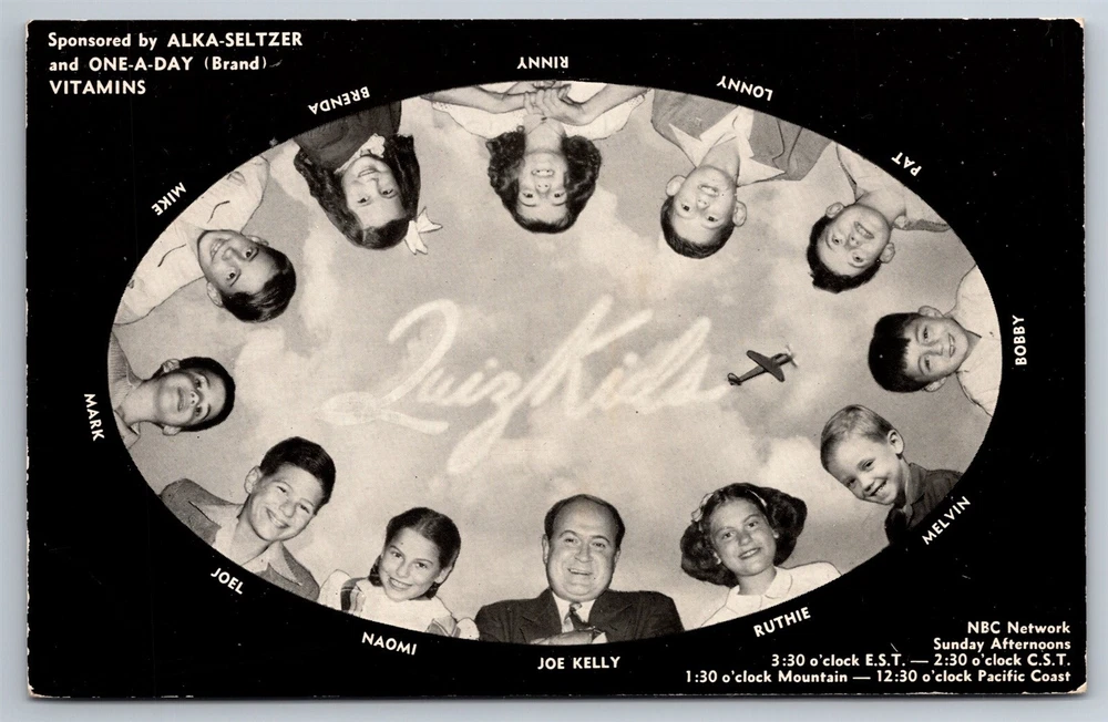 Quiz Kids NBC Alka-Seltzer & One-A-Day Vitamins Advertising C1949 Postcard Y12 Thank you for visiting! This is a standard size postcard, 3.5" X 5.5". In stock, usually ships within 24 hours of your purchase. Please ask questions if you are unsure about anything. Our goal is for your complete satisfaction with the postcard and your experience. Check all my other listings in my store. RETIREDWITHBOOKS Powered by SixBit's eCommerce Solution