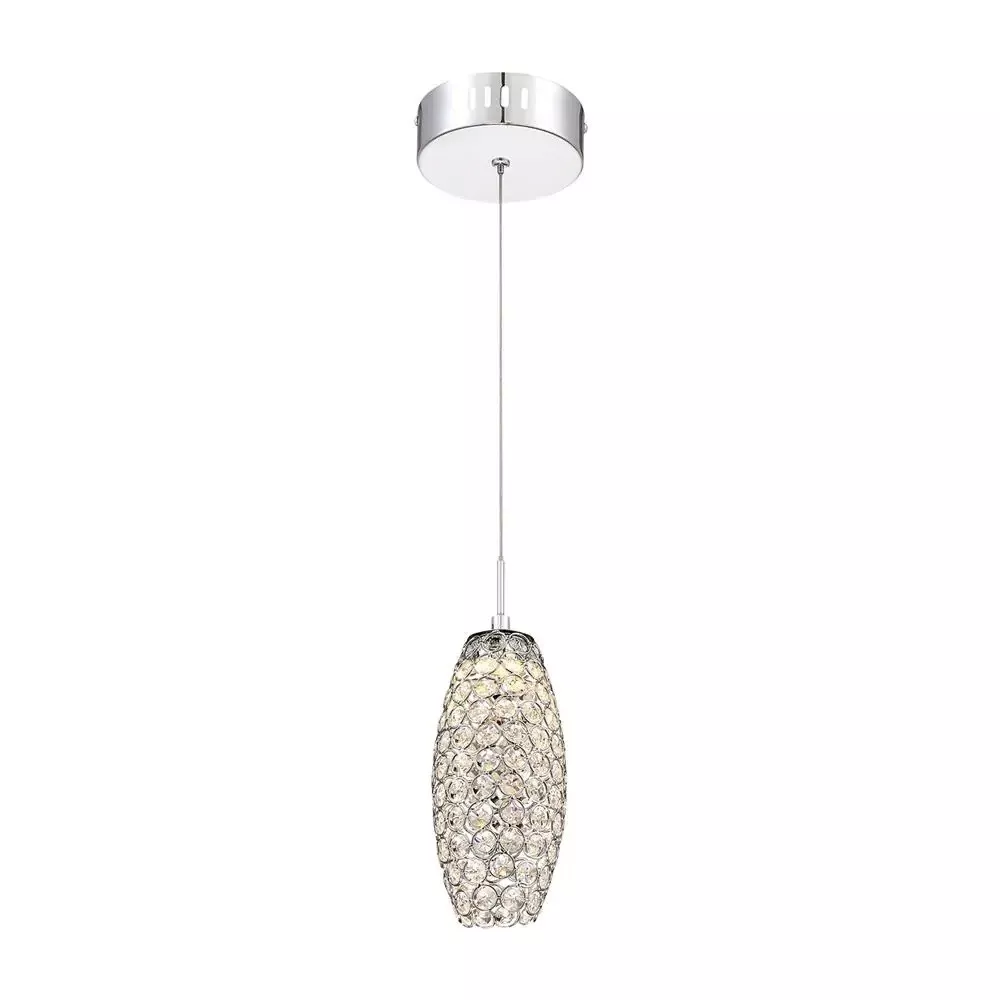 Quoizel Infinity Single Light 4" Wide Low Voltage LED Pendant. Includes clear crystal shade Metal and crystal construction Includes clear crystal accents Includes (1) 4.5 watt Integrated LED module Includes 96" of hanging cord Fixture is capable of being dimmed with appropriate dimmer switch Rated for installation and use in dry locations 3 year manufacturer warranty on finish 10 year manufacturer warranty on electrical components Dimensions: Height: 11" Width: 4" Depth: 4" Product Weight: 2.2 lbs Wire Length: 96" Canopy Height: 1.5" Canopy Width: 5" Shade Height: 8.25" Shade Diameter: 2.25" Electrical Specifications: Number of Bulbs: 1 Bulb Included: Yes Bulb Base: Integrated LED Bulb Type: LED Wattage: 4.5w Watts Per Bulb: 4.5w Voltage: 12v Color Temperature: 3000K Color Rendering Index (CRI): 90 Lumens: 450