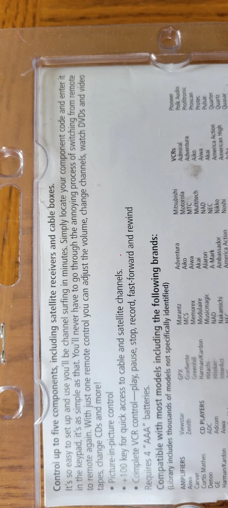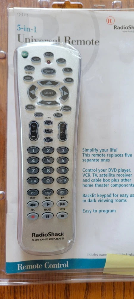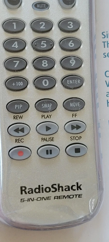 RADIO SHACK 5-IN-ONE TV Cable Sattalite VCR DVD AUX REMOTE Instructions.
