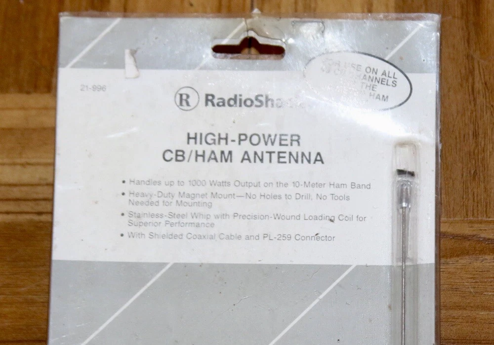 RADIOSHACK HI/POWER CB/HAM ANTENNA FROM LOCAL CONSIGNOR ========================== LOOK PHOTOS FOR COSMETIC CONDITION ====================================================== - ================================ LOCAL PICKUP IS FREE ------------------------------------ * Professional packaging to avoid any damage in transit ================================= ======================================================================== FULL WARRANTY AS LISTED -------- LOOK PICTURE---------- Why wait, use Buy It Now and get it for a very low price i f you live in the Howard County, MD Area I will consider arranging local pick-up or delivery if prior arrangements are made. LOCAL PICKUP FREE Always try to give as much information as possible but if you have more questions or would like more pictures then use the Ask Seller a Question link and I would be more than happy to provide them. A picture is worth a thousand words so take a look as that is the actual item and accessories you will receive. That's it so please if you would like read my About Me page and Feedback and bid with confidence! Good luck and Happy Bidding All!