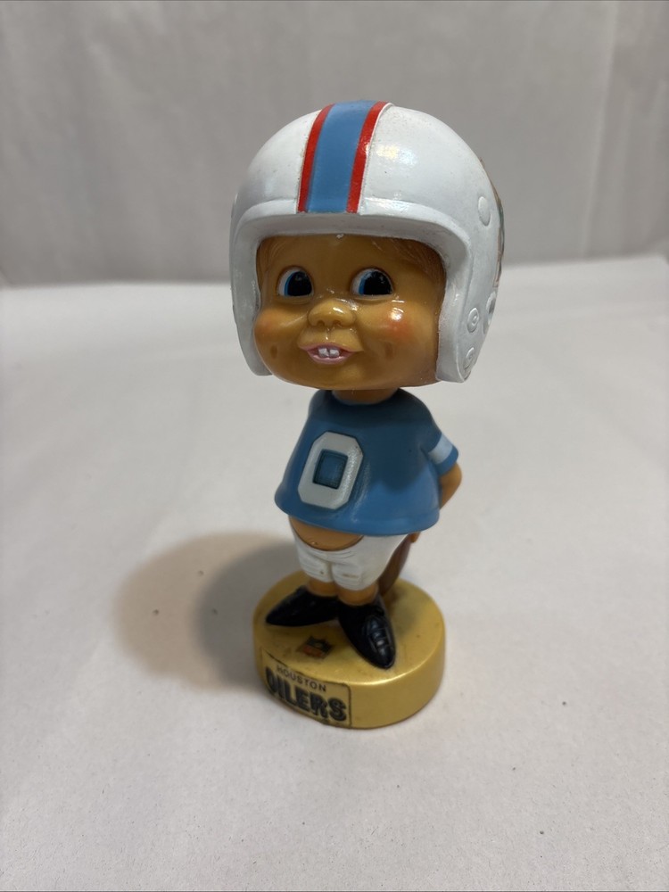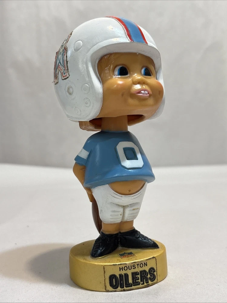 This rare vintage 1975 NFL Properties Inc. Houston Oilers bobble head . Officially licensed and made in Taiwan, this original retro piece is a must-have for any collector of vintage sports memorabilia. The bobblehead is a unique and nostalgic item for fans of the Houston Oilers and football enthusiasts alike appears to be some slight damage on the underside of the head please look at photos for better details