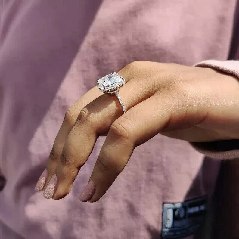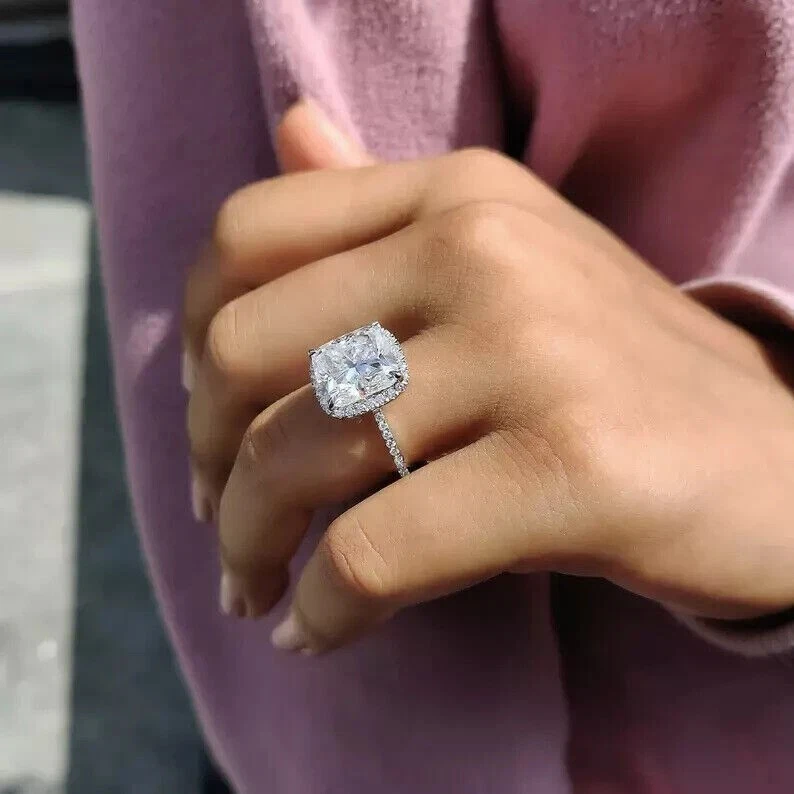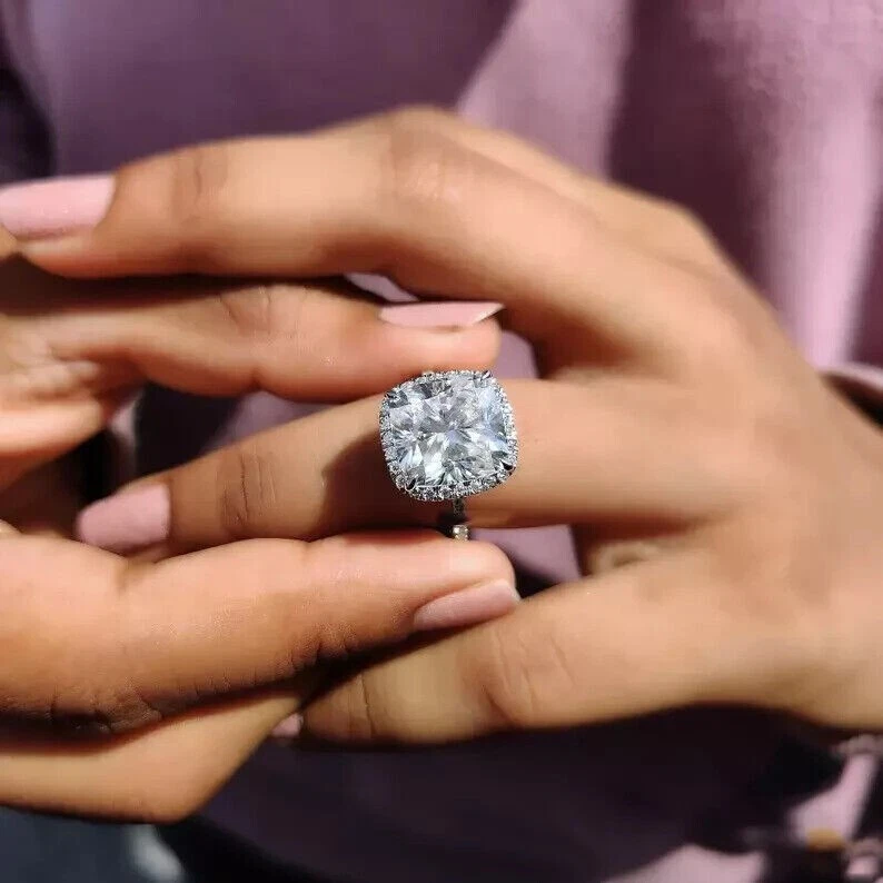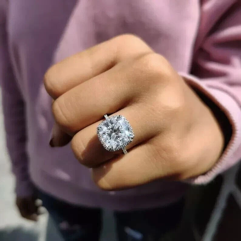 GREAT SHINE! EXCELLENT LUSTER! Diamond Color - White Shape of Diamond - Cushion Cut Approx. Weight of Diamond - 4.65 Carat Approx. Size of Diamond - 11 mm 9 mm Origin of Diamond - Brazil Species - Earth Mined Treated - HPHT Cut - Excellent Clarity - VVs1 Size of Ring – US 7 is default size - (Can be resize at the time making payment) Metal - Stamped 925 solid Sterling Silver Finish - White Gold CERTIFICATE OF AUTHENTICITY PROVIDED This diamond ring is handcrafted with utmost care. Would make an ideal gift for someone special. The diamond has excellent cut and luster. Comes in attractive packaging. Shipping : Shipping is by USPS/SPEEDPOST/DHL or similar shipping agencies to reach you in 9-12 business days after processing the order. Tracking is provided. For USPS the tracking will show up in transit after 7-9 days once it reaches US from India. Please note: Jewelry items can take up to 10-12business days to process to take care of ring sizing if any, polishing