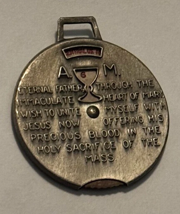 PRESENTED HERE FOR AUCTION IS A VINTAGE NUNS MOVABLE MASS TIME ZONE CLOCK HOLY MEDAL. IT IS FROM A NOW CLOSED NUNS CONVENT, BELONGED TO ONE OF THE SISTERS AND HAS A DIAL WHICH CHANGES THE DIFFERENT COUNTRIES AND TIMES. IT MEASURES 1 3/4 INCH HIGH BY 1 1/2 INCH WIDE. WE SHIP WORLDWIDE! *** ALL ITEMS MUST BE PAID FOR WITHIN 5 DAYS. PLEASE NOTE WE HAVE A 5 BUSINESS DAY HANDLING PERIOD, ALL ITEMS ARE SOLD AS IS, FINAL SALE, THANK YOU! *** *** CONSIGNMENT POSITIONS OPEN, ALSO DOING BUY OUTS NATIONWIDE! ***