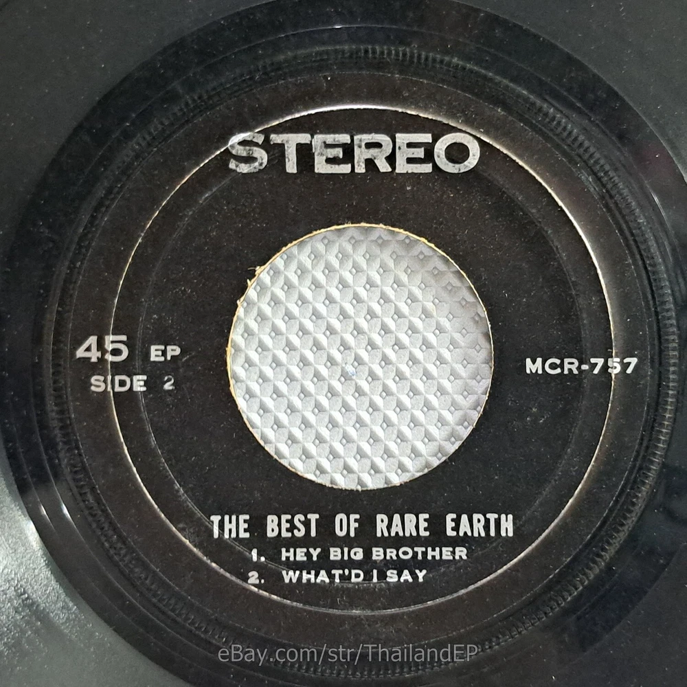 Welcome to The World of ""Thailand Vinyl Records"".Very rare and beutiful picture of cover. Check everyday . This item is for a true 7" single collector. It was printed and sold locally as limited EP back in the early 70's. Only few copies were spread outside Thailand. Most professional record collectors know that it is scarce nowadays and is absolutely a collector's item. If you know a UK magazine called RECORD COLLECTOR then you must have read many articles mentioning THAILAND EP and this is it !!! Here is your chance to own one-of-a-kind piece of Asian's 7" single history. Description Records !!! DETAIL SONG and ARTIST !!! Side A: A1 = Rare Earth - Get Ready / A2 = Rare Earth - Hey Big Brother Side B: B1 = Rare Earth - What'd I Say / B2 = Rare Earth - 0 Label&Catalogue number : : MCR757 Country of release : THAILAND Condition (Sleeve/Disc) : VG+ / VG+ and pls see picture too. Shipping I am seller in Thailand not USA.So I can not ship 4$ as policy pls understand this real rate from oversea . Price for shipping(Airmail )&Packaging to worldwide only US 14.99 USD .Except Asia and JAPAN only 14.99 USD. You can save cost for combine shipping only 3 USD$ per each. 2xEP=17.99 USD$ , 3xEP=20.99 USD$ . My package very safety by big cardboard don't worry about your's EP/PS/LP. Time delivered 21-45 days . ***All item : have tracking system no need add money*** **For normal shipping (Airmail).Time delivery to ITALY maybe use 1-2 Months, France use 1-2 Months.But Don't worry item will arrived to you sure!!.For fastest and High value you can use Express Mail Service cost for1 EP =39 USD.EP will arrived to you within 5-7 Days. ***All shipment have fully tracking system *** Payment PAYMENT : I accept the follow payment by eBay managed , . My ID eBay provide by eBay .Account will be provide at the end auction.Charges to be covered by winner. If you have question pls email to me anytime i can answer immediatly. I have many EP,PS 7" Thailand Pls Click => View seller's other items Check my feedback , I care and honest all customer.I welcome 0 feedback but contact me first if you will bidding. Good Luck !!!! and Enjoy . 45 RPM / EP/ LP Grading Scale: Mint /NM/ Excellent(VG++) /VG+/ VG /G+ /Good(G) / Fair / Poor / Bad (According Record Collector Magazine (UK)) LOT152-33MCR757