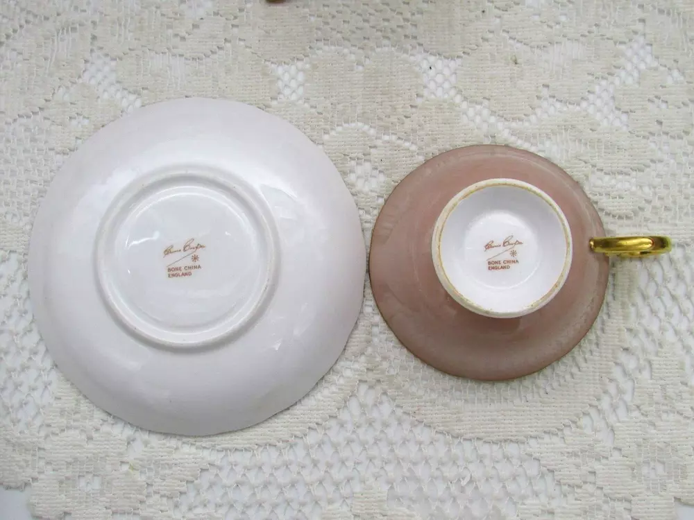 This is a rare Susie Cooper tea cup and saucer. Sandy tan, with a hand painted rose over a beige ground. The handle and footed base are fully overlaid with gold gilt, the rims are gold gilt trimmed. In very good vintage condition. No chips, cracks, crazing, or wearing of gold. Both items ping clearly when tapped. Please excuse the camera glare. I will gladly combine shipping for multiple items. Please contact me for a quote. Payments are expected within 3 days of auction ending, unless otherwise discussed beforehand. If you are combining multiple items, please wait for a revised invoice with the new shipping total. I am here to help in anyway that I can, so if you are unhappy with an item, please contact me first before leaving negative feedback. I believe anything can be worked out with communication. Thank you! I do not make any money from the shipping cost. I cover the cost of shipping supplies out of my own pocket. Please consider this before leaving other then a 5 star rating for shipping cost. I ship within 3 days of receiving payment. I ship by small package air to the United States, without tracking. If you require a tracking method, please let me know, and I will supply a tracking service, at extra cost. International shipping is by small package air, without a tracking number. I can ship with tracking, but the cost internationally, can be very high. Shipping to the United States can take from 6 to 14 business days, or longer, depending on customs. International shipping can take from 10 to 21 BUSINESS days, or more, depending on customs in your country. Auction Template Design © In My Cedar Chest - Unauthorized Duplication Prohibited. I will no longer ship to China without a tracking number. Please contact me for a quote before paying for your item.